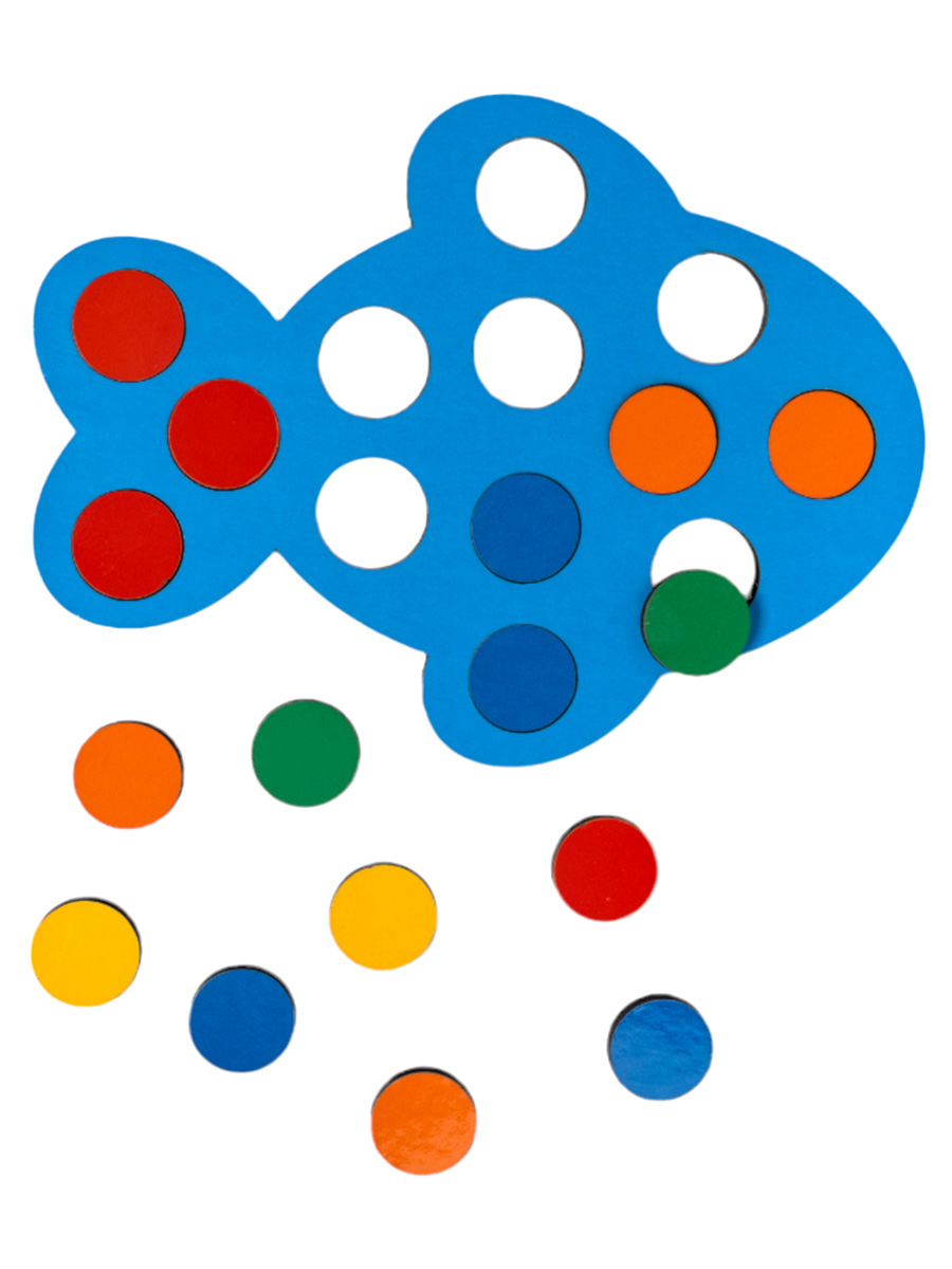 - Помогите ребенку подобрать цветные кружочки в соответствии с рисунком на карточке.