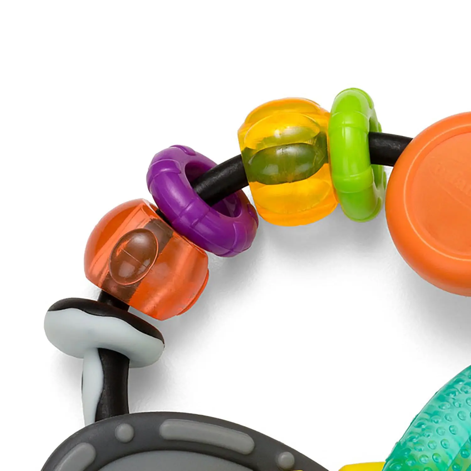 Прорезыватель имеет набор ключей с различными текстурами, а также бусины, которые вращаются и гремят. На каждом ключике изображена цифра. Эргономичная форма, идеально подходит для детских ручек.