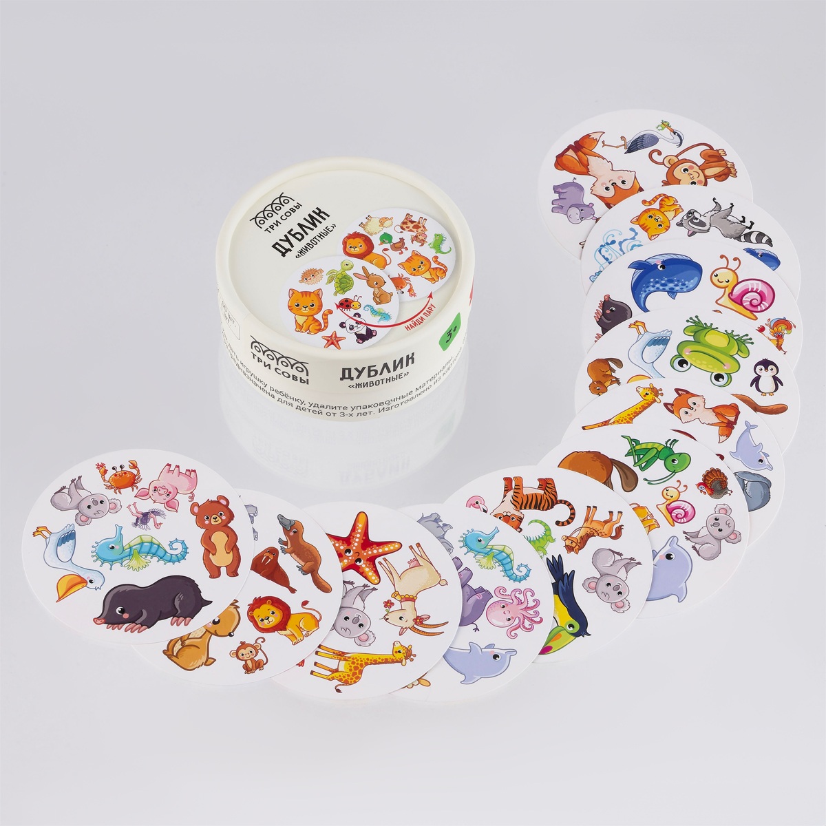 Настольная игра «Дублик: Животные» от бренда «ТРИ СОВЫ» — веселое развитие внимания и памяти.