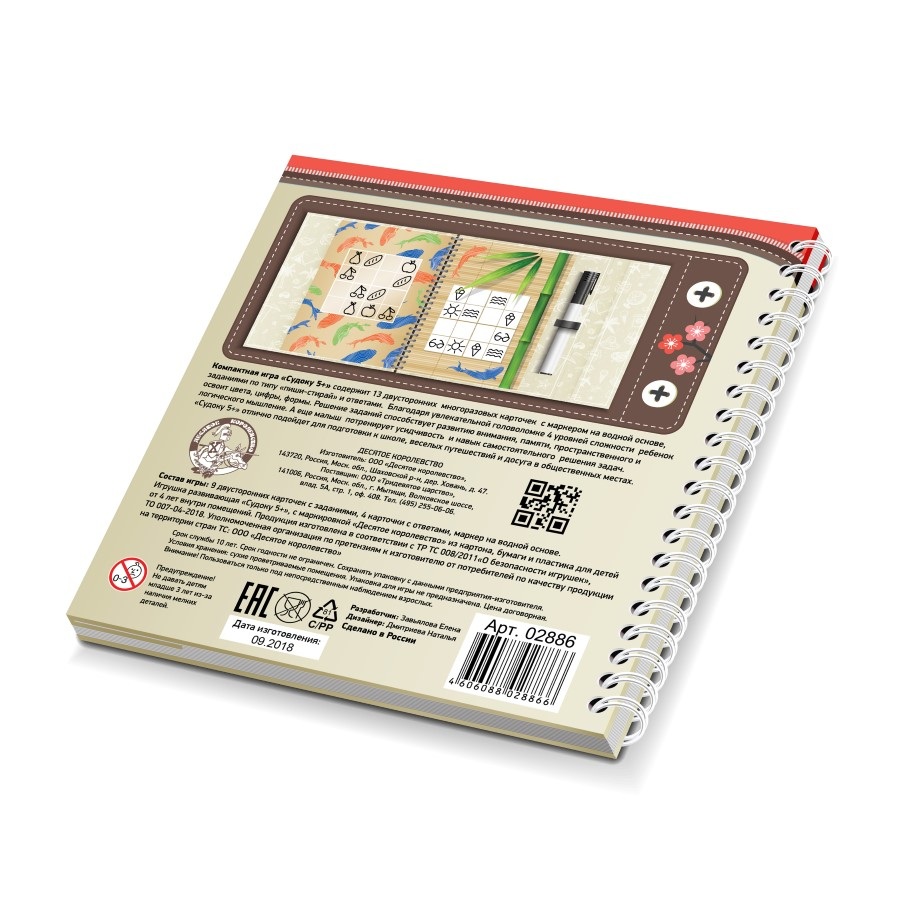 «Судоку 5+» — это адаптированная версия классической логической головоломки, созданная специально для подготовки детей к школе. В этой игре цифры, цвета и формы помогают ребенку освоить азы логики, пространственного мышления и внимательности. Благодаря формату «пиши-стирай» и многоразовым карточкам, игру можно проходить снова и снова, оттачивая навык решения задач.