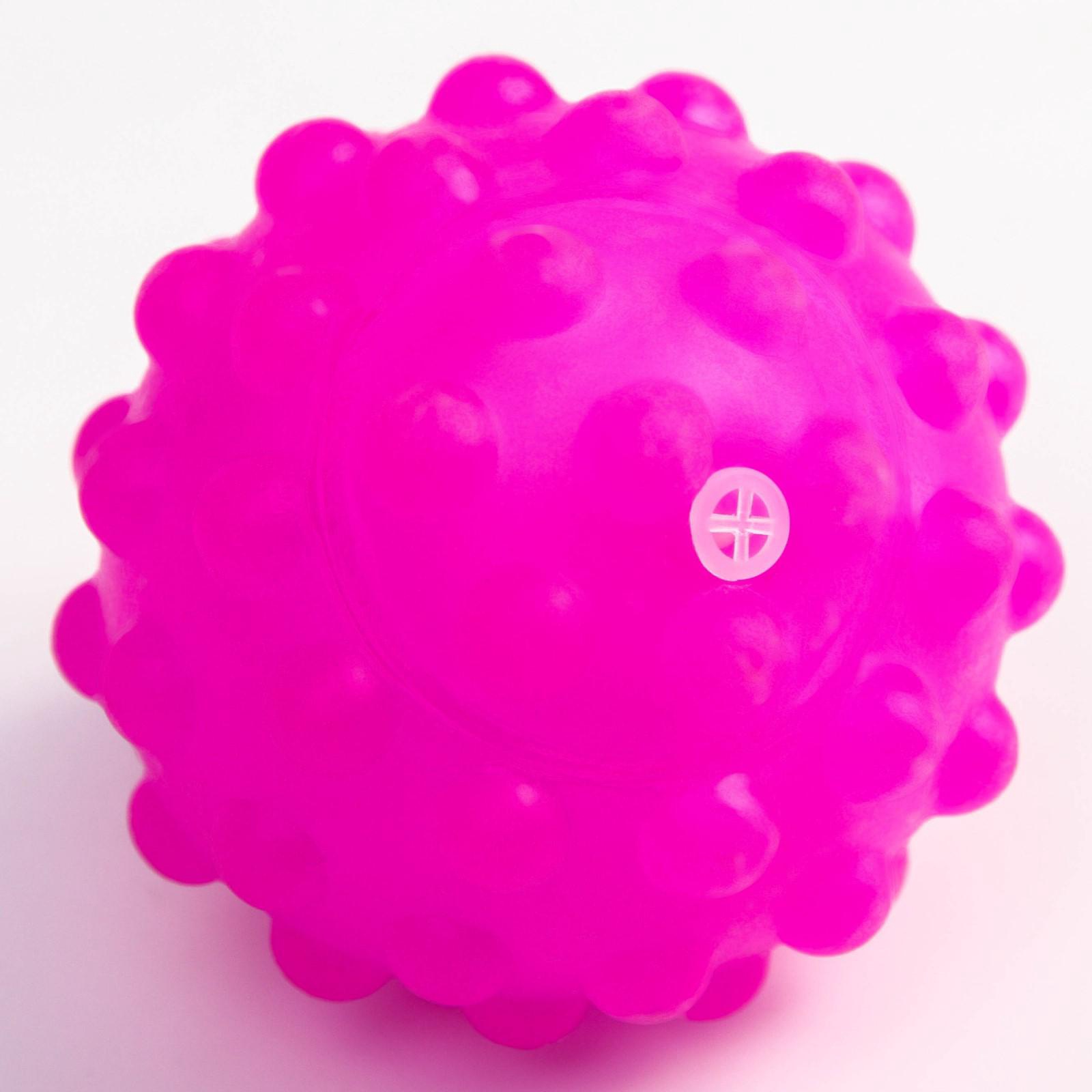 Мячики с рельефной массажной поверхностью способствуют развитию мелкой моторики и тактильных ощущений. Давление на фактурную поверхность мячиков стимулирует и благоприятно воздействует на нервные окончания, ответственные за большинство процессов в организме. Шарики имеют яркие цвета, которые способствуют развитию зрения, а пищалка внутри развивает слуховое восприятие.