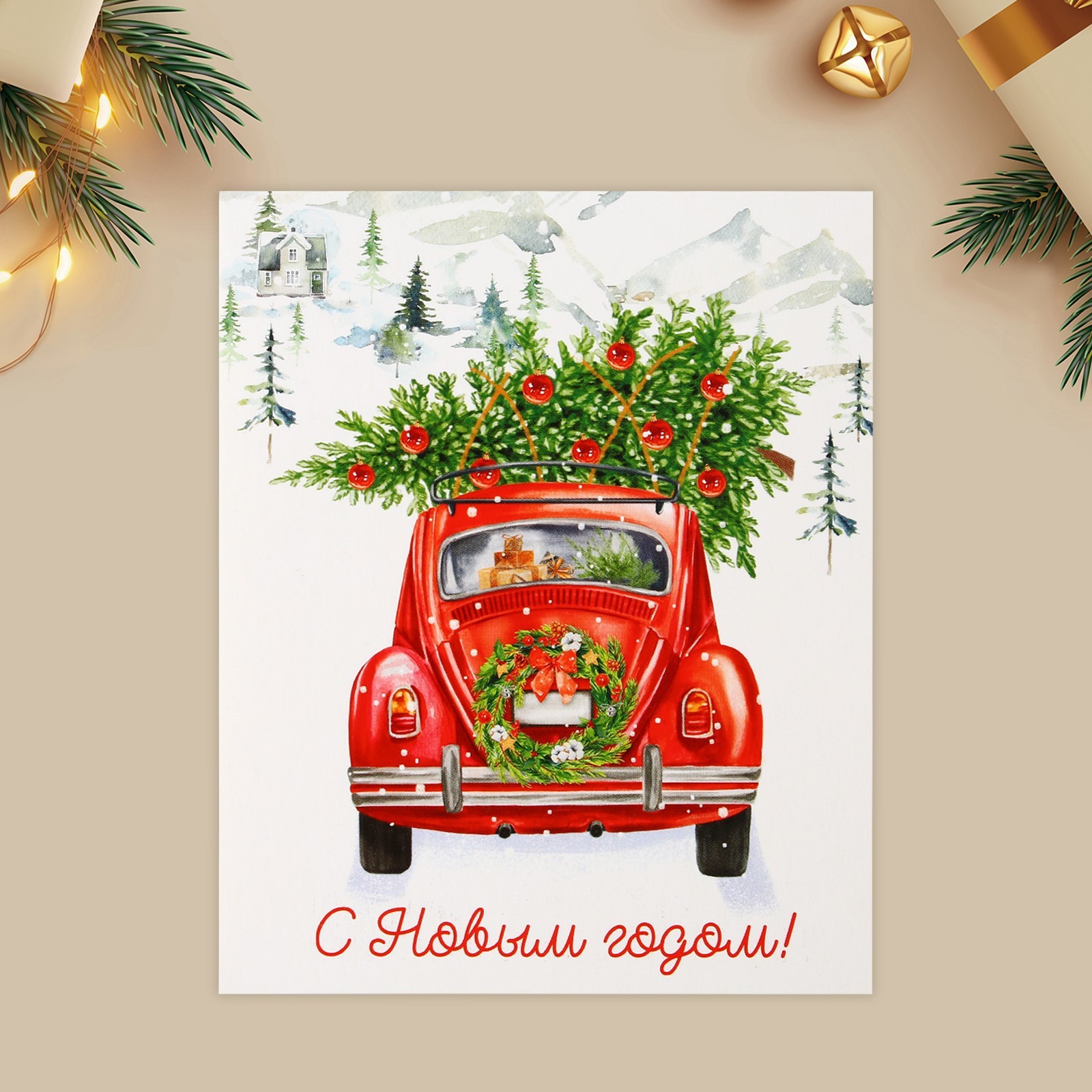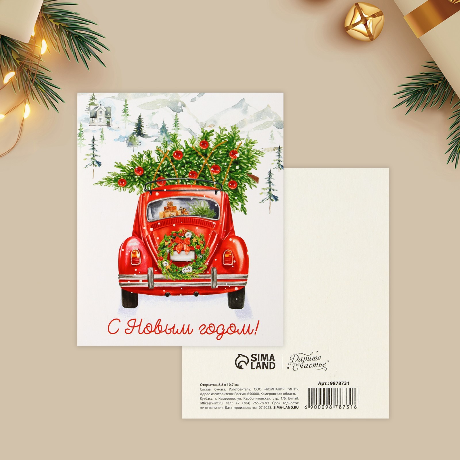 Дарите Счастье, Открытка-мини "С Новым Годом!" везём ёлку 8.8 х 10.7 см