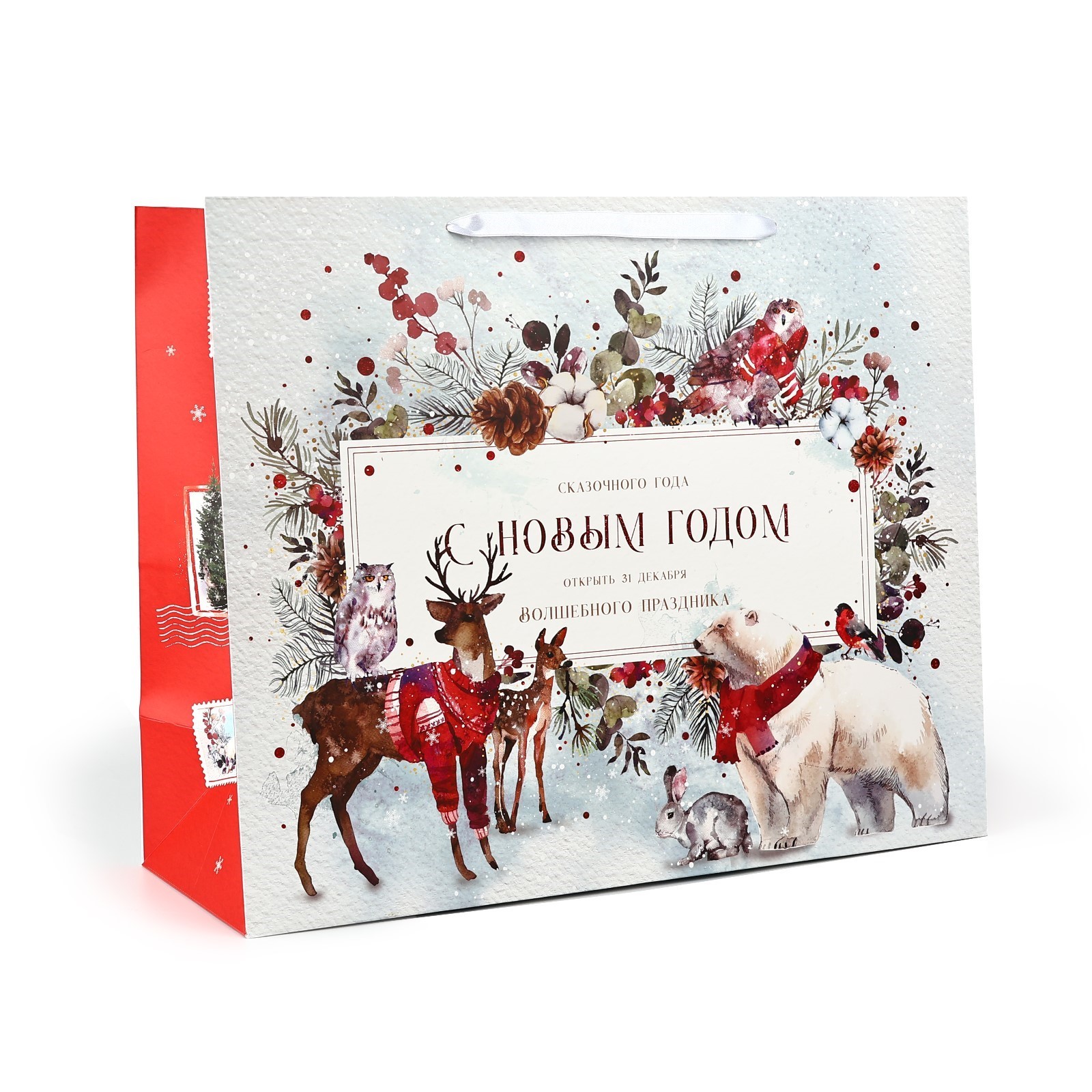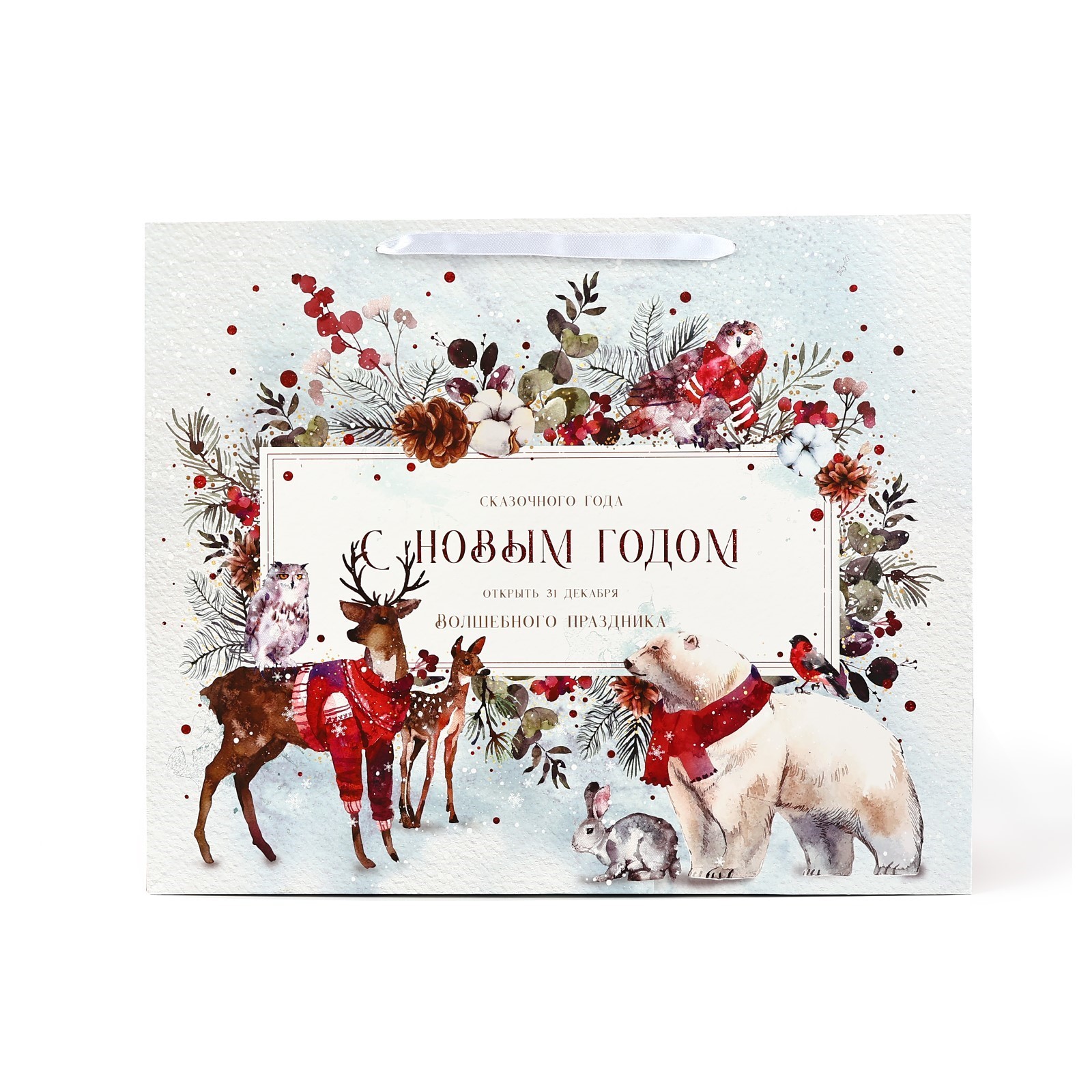 Яркий и красочный аксессуар, созданный для того, чтобы подчеркнуть атмосферу зимнего торжества. Качественное исполнение и классические праздничные мотивы делают этот пакет идеальным дополнением к любому новогоднему подарку.