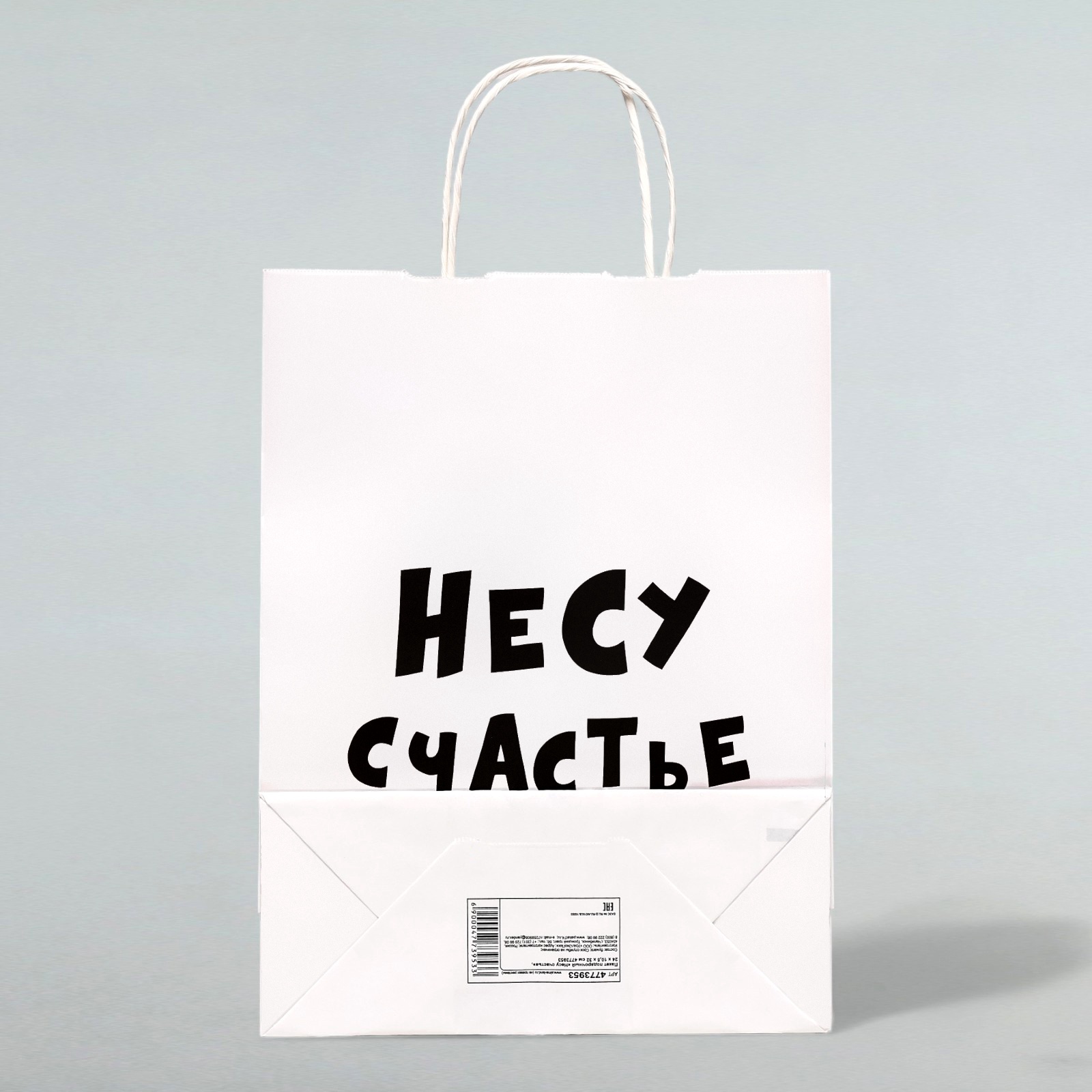 - Материал: Белая крафт-бумага с кручеными ручками.