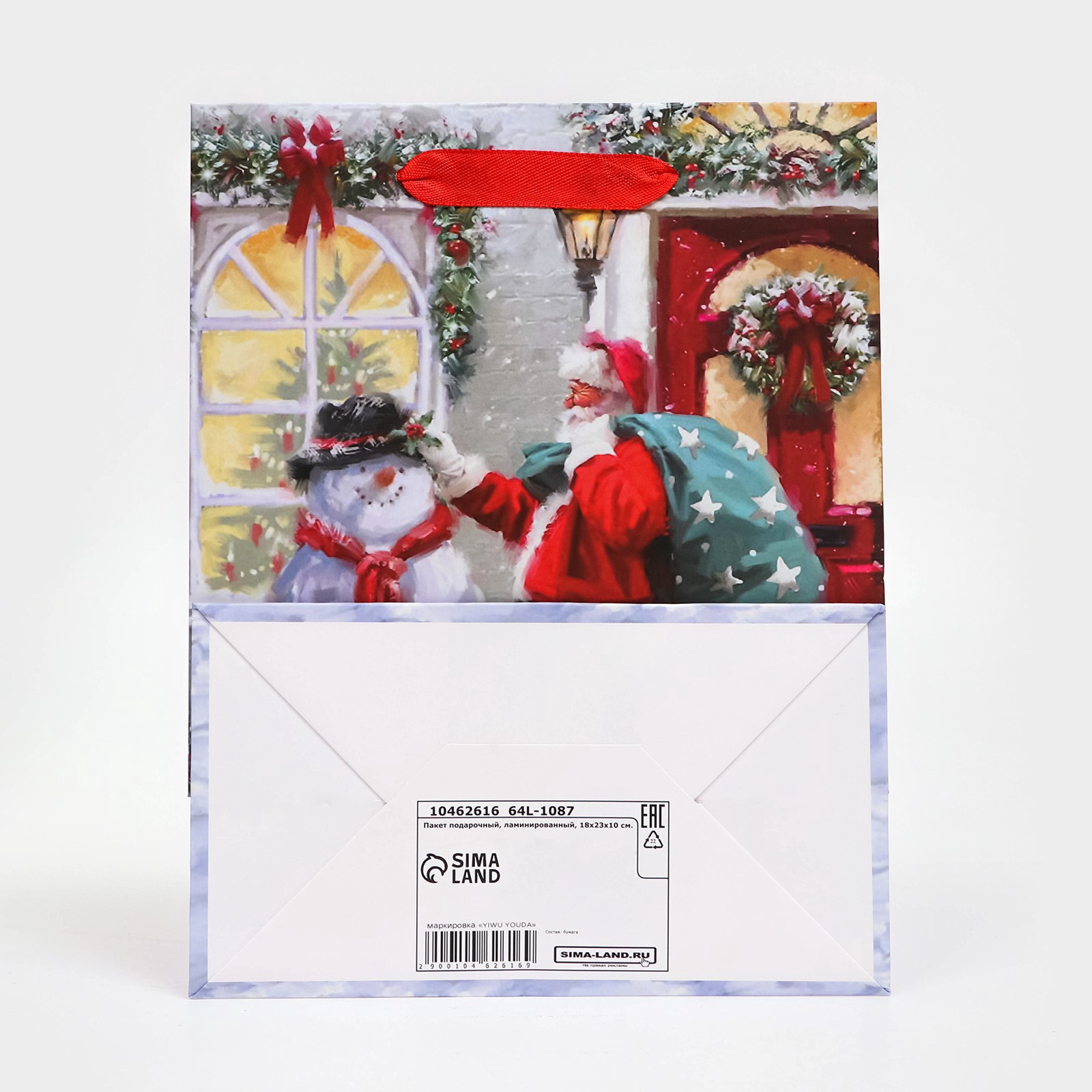Элегантная и практичная упаковка для ваших праздничных сюрпризов. Пакет сочетает в себе изысканный блеск ламинированной поверхности и надежность конструкции, превращая процесс вручения подарка в настоящую новогоднюю историю.