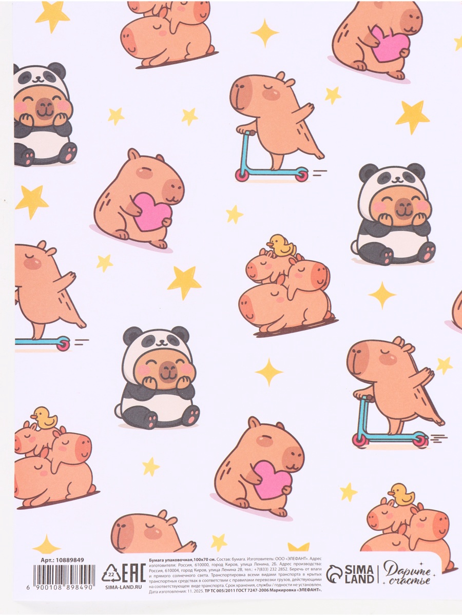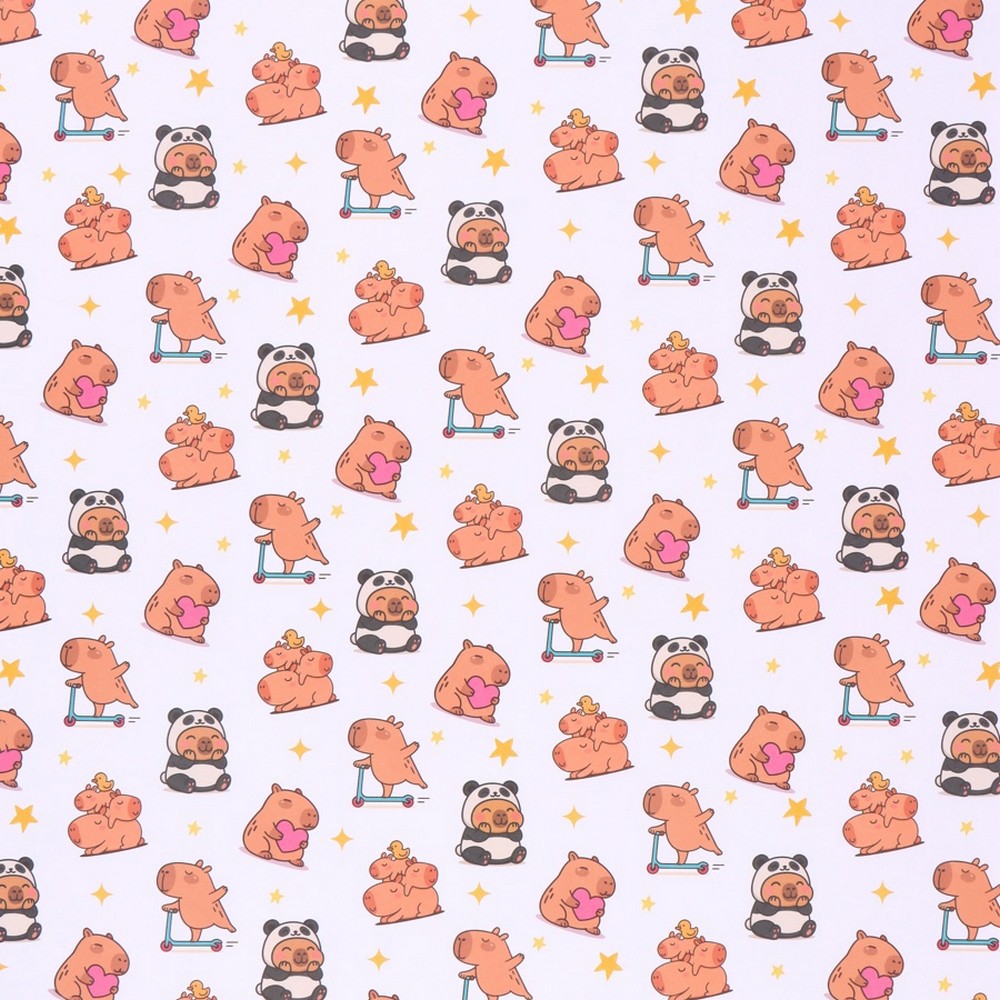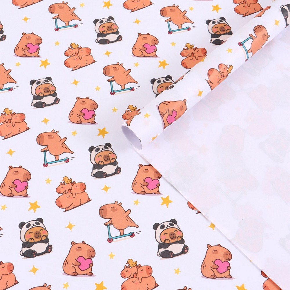 Бумага упаковочная крафтовая 70 х 100 см "Капибары"