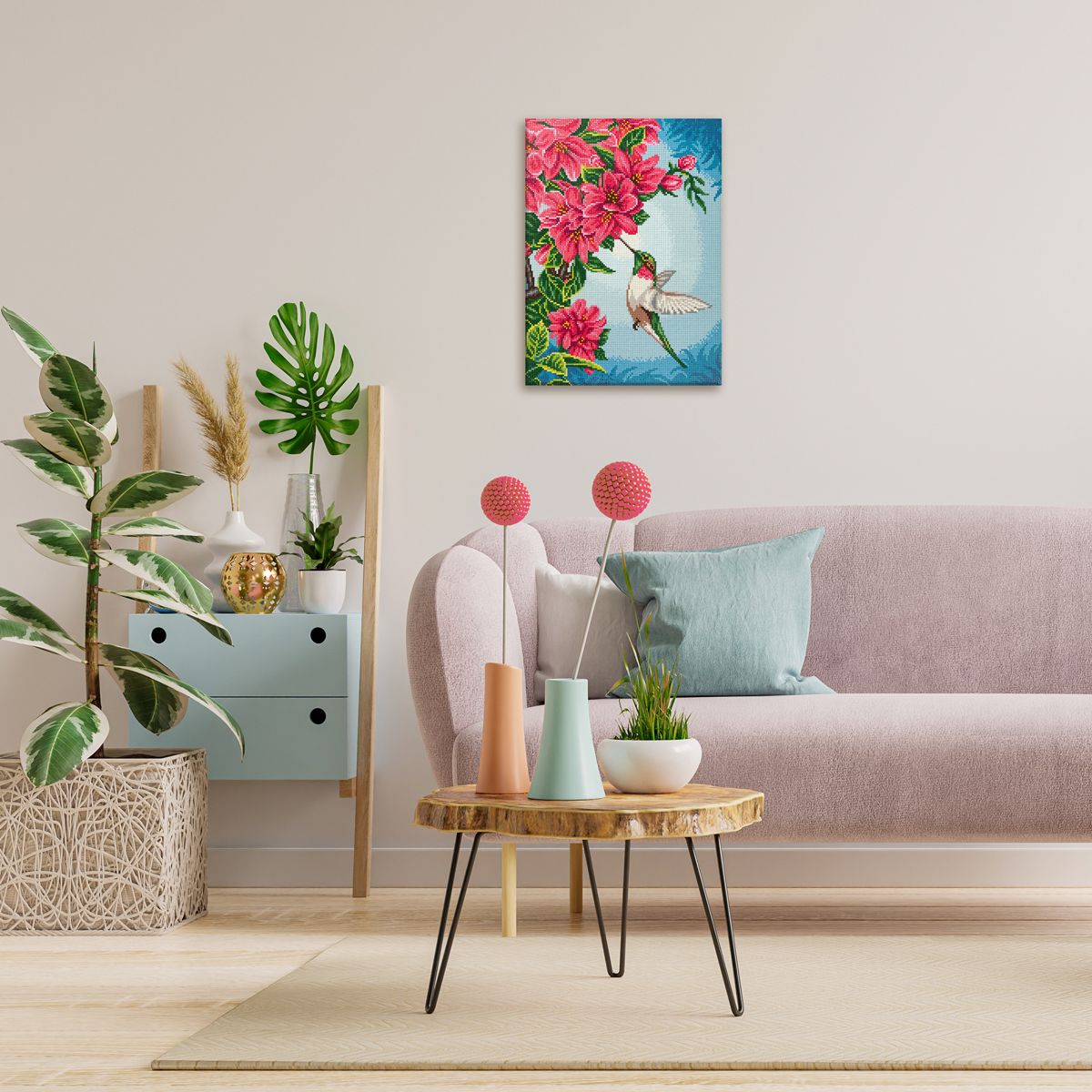 Набор для создания картины в технике «Кристальная мозаика» — это возможность своими руками создать сверкающий шедевр, который станет ярким украшением вашего дома. Холст уже натянут на прочный деревянный подрамник, поэтому вам не придётся оформлять готовую работу в багет, её можно сразу повесить на стену или поставить на полку.