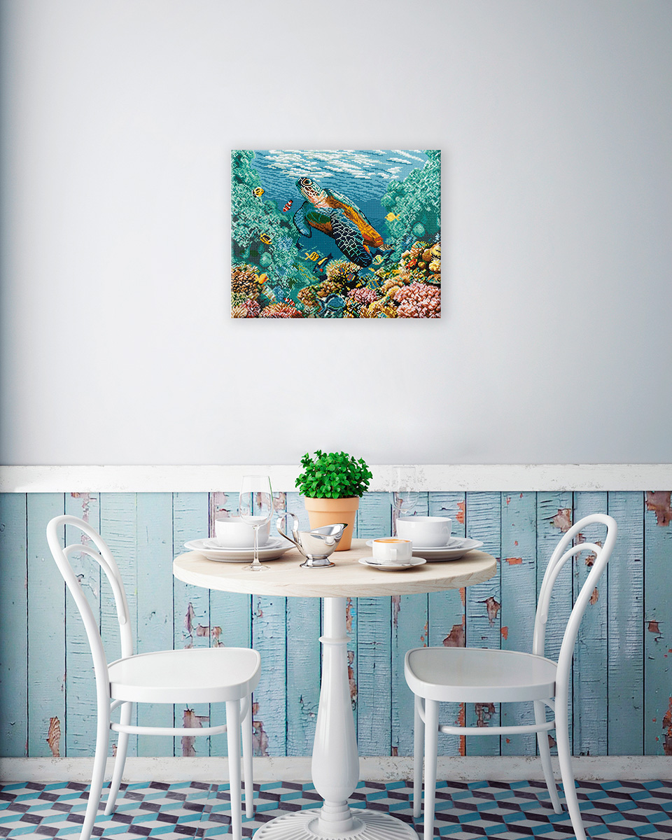 - Простота и удобство: Выкладывать картину очень легко и быстро, так как стразы надёжно крепятся на уже нанесённый клеевой слой.