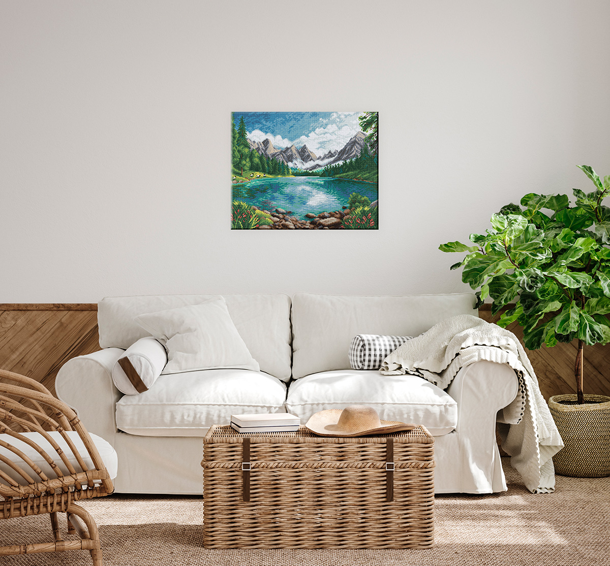 Набор для создания картины в технике «Кристальная мозаика» — это возможность своими руками создать сверкающий шедевр, который станет ярким украшением вашего дома. Холст уже натянут на прочный деревянный подрамник, поэтому вам не придётся оформлять готовую работу в багет, её можно сразу повесить на стену или поставить на полку.