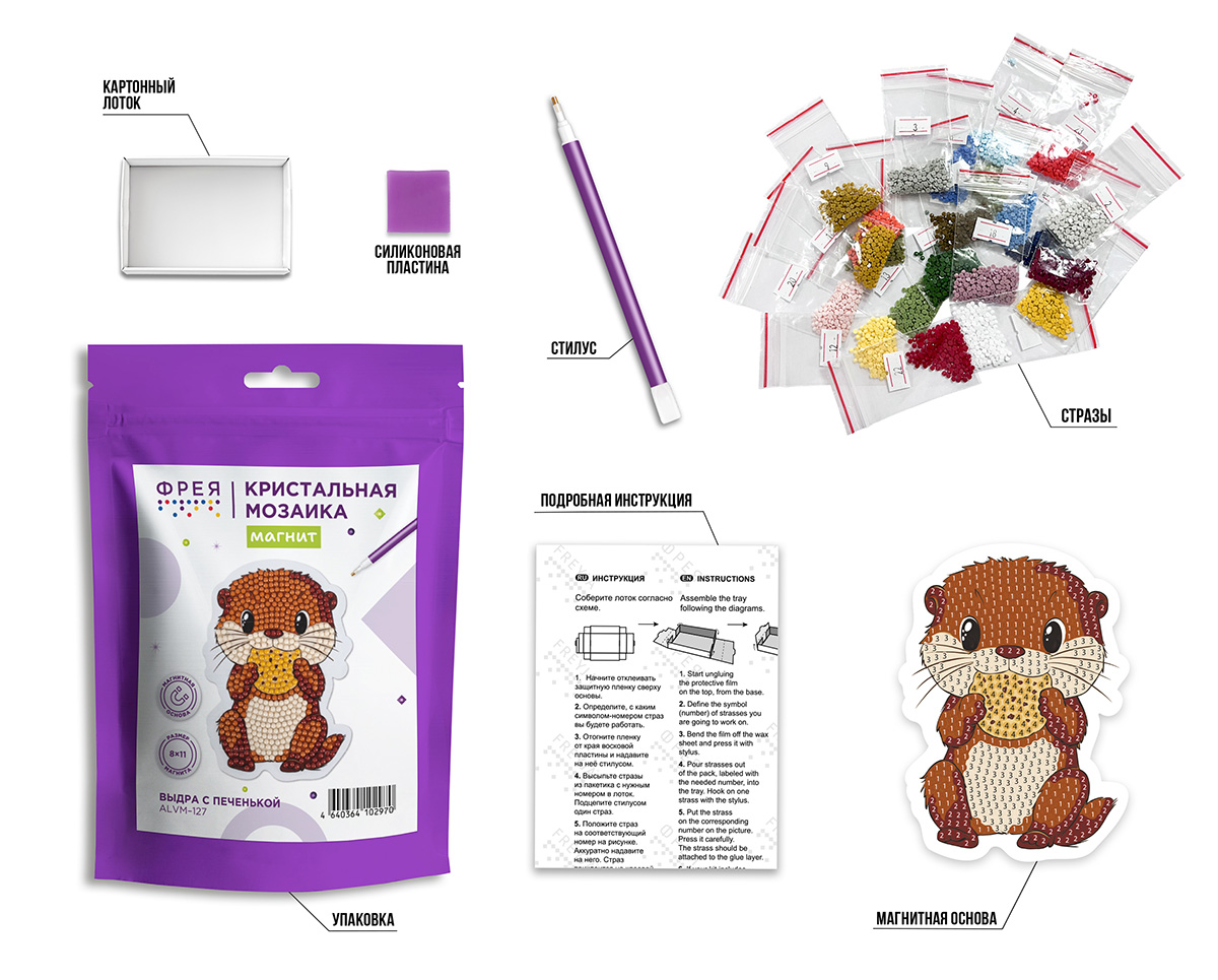 Набор позволяет создать яркий и оригинальный магнит в технике "Кристальная/алмазная мозаика". Выполнение работы очень легко и быстро, не требует специальных навыков. Процесс развивает мелкую моторику и концентрацию внимания. Набор сертифицирован для детского творчества.