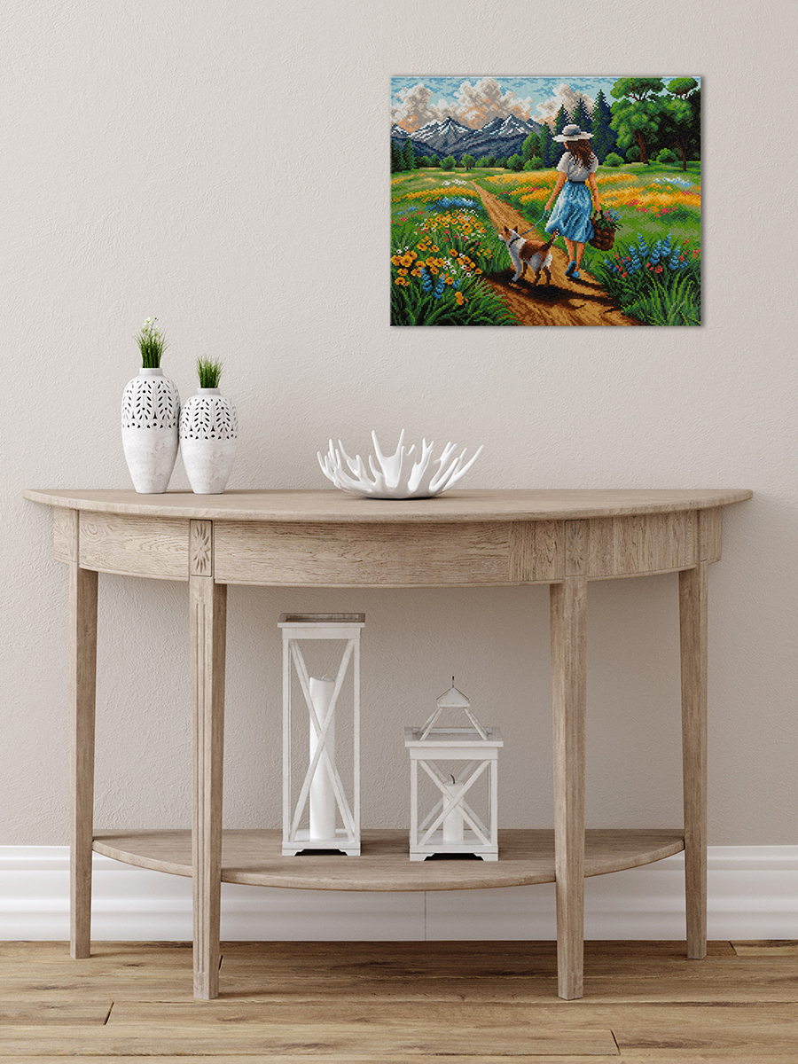 Профессиональный набор для изготовления картины в технике "Кристальная/алмазная мозаика". Холст уже натянут на деревянный подрамник с подложкой, что исключает провисание и необходимость оформления в багет. Стразы меньшего размера обеспечивают более детальное и реалистичное изображение. Граненые акриловые стразы придают работе **неповторимый блеск**, напоминая мерцание кристаллов.