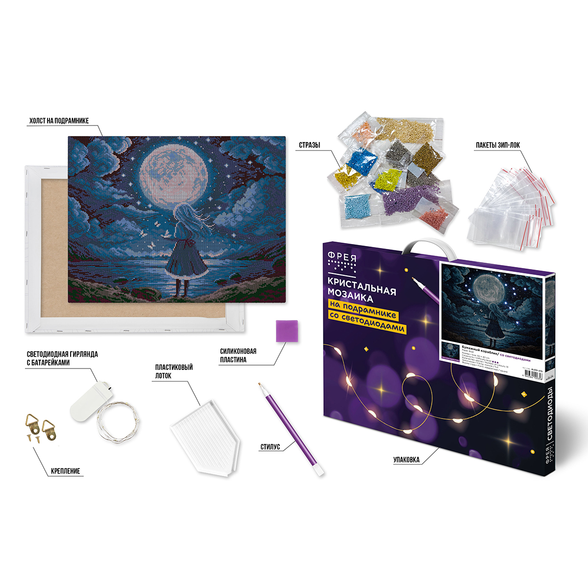 Набор для создания светящейся картины ТМ ФРЕЯ "Кристальная мозаика" (Со светодиодами, Подрамник)