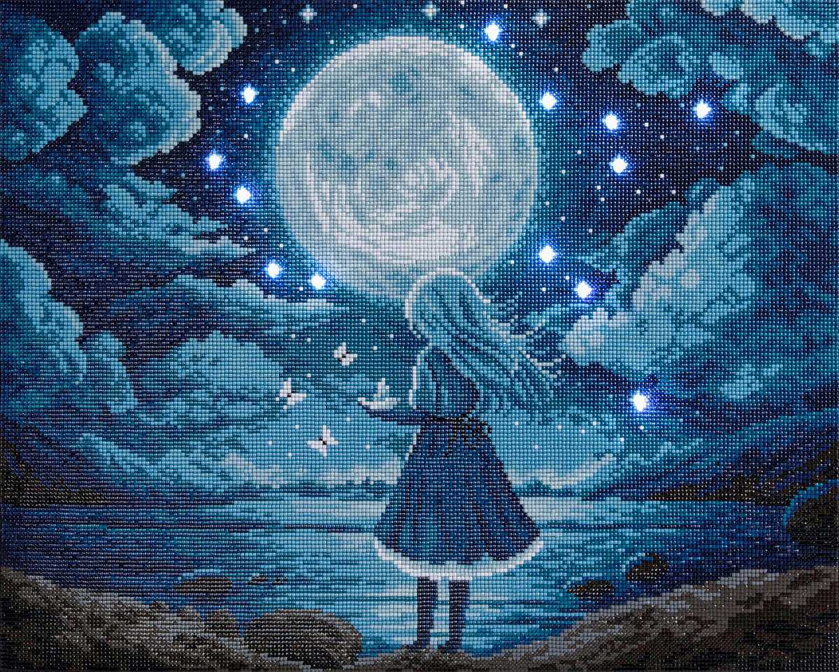 Новая серия наборов для алмазной мозаики с встроенными светодиодами! Готовая картина станет еще эффектнее, так как светодиодная гирлянда добавляет блеск, объем и уютное свечение (холодный свет). Холст уже натянут на деревянный подрамник с подложкой, исключая провисание и необходимость оформления в багет. Стразы меньшего размера обеспечивают более детальное и реалистичное изображение.