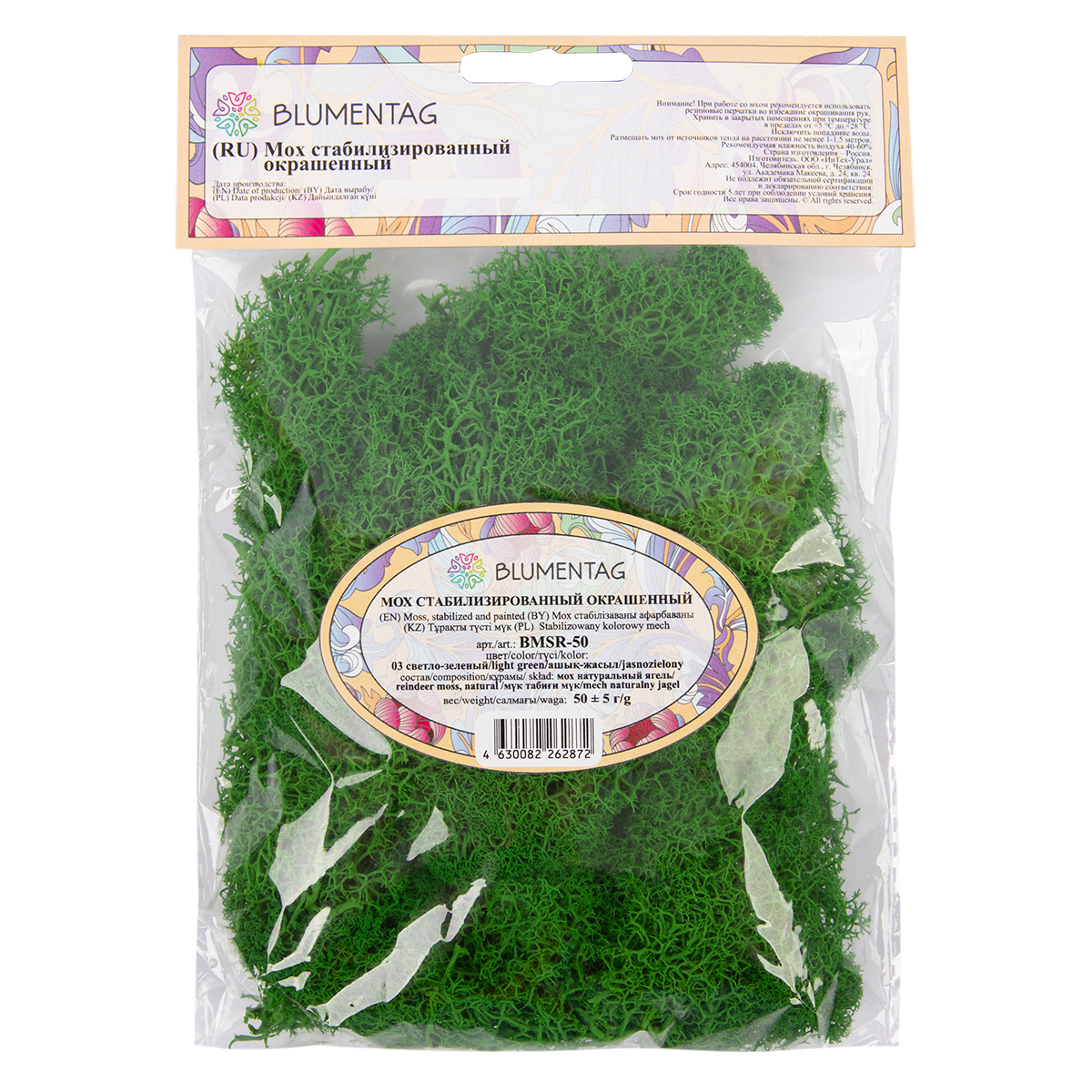 Мох стабилизированный окрашенный Blumentag 50 г ± 5 г №03 св.зеленый BMSR-50-03