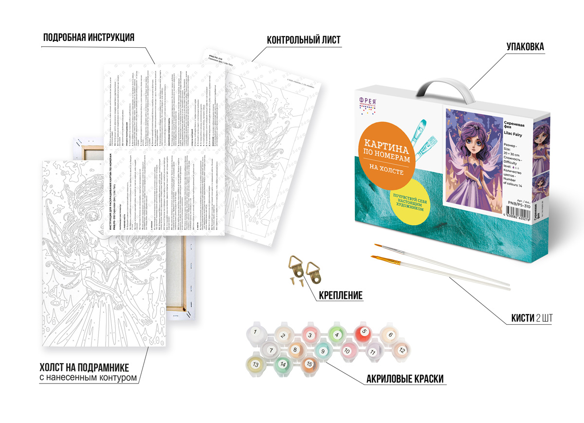 - Точность и чёткость: Чёткий пронумерованный контур нанесён даже на торцы подрамника, что позволяет вешать готовую работу без дополнительной рамы.