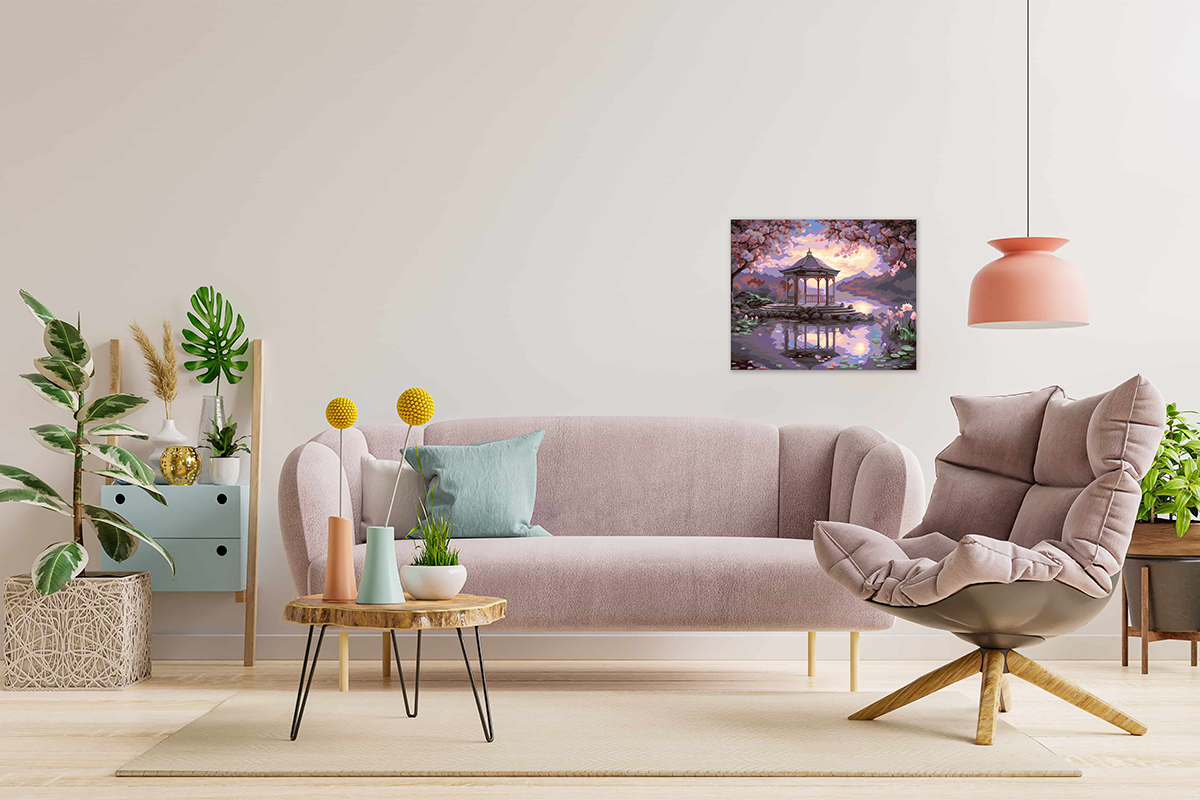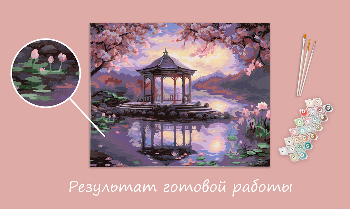 - Готовность к декору: Контур рисунка нанесён даже на торцы подрамника, так что готовую работу можно сразу вешать на стену без рамы.