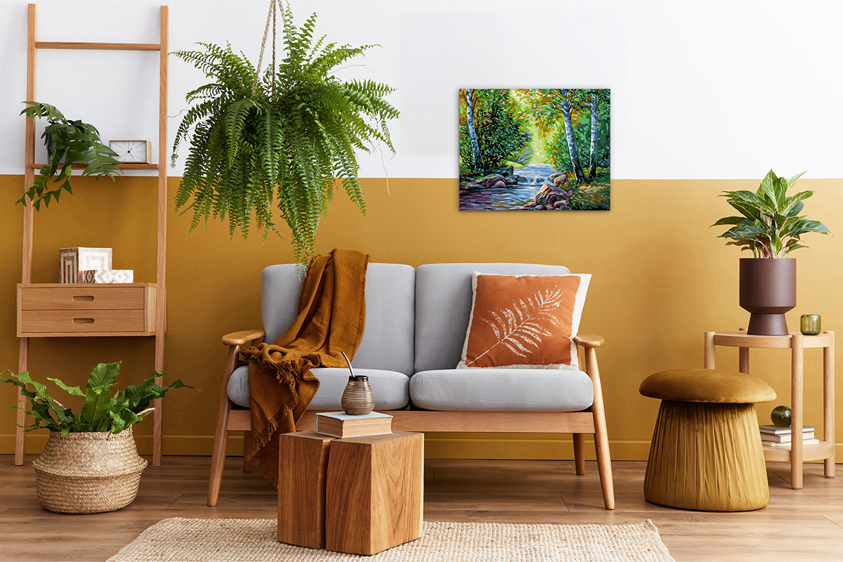 - Готовность к декору: Контур рисунка нанесён даже на торцы подрамника, так что готовую работу можно сразу вешать на стену без рамы.