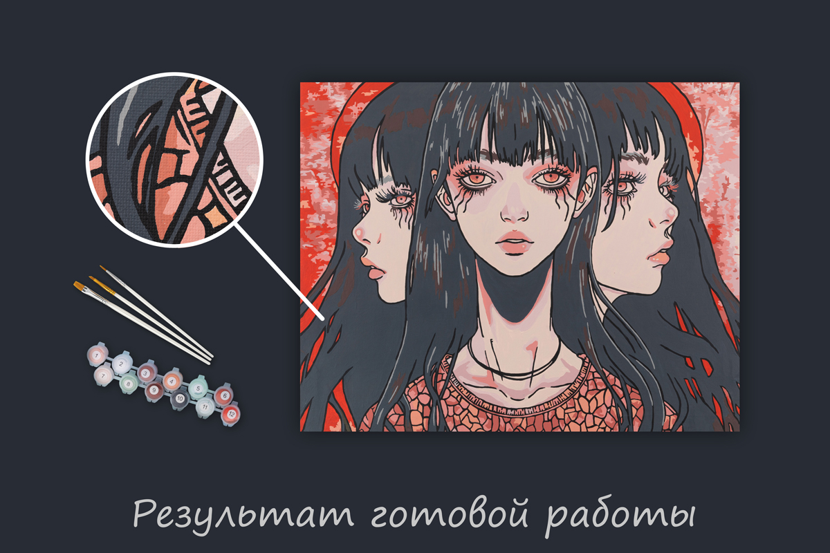 - Готовность к декору: Контур рисунка нанесён даже на торцы подрамника, так что готовую работу можно сразу вешать на стену без рамы.