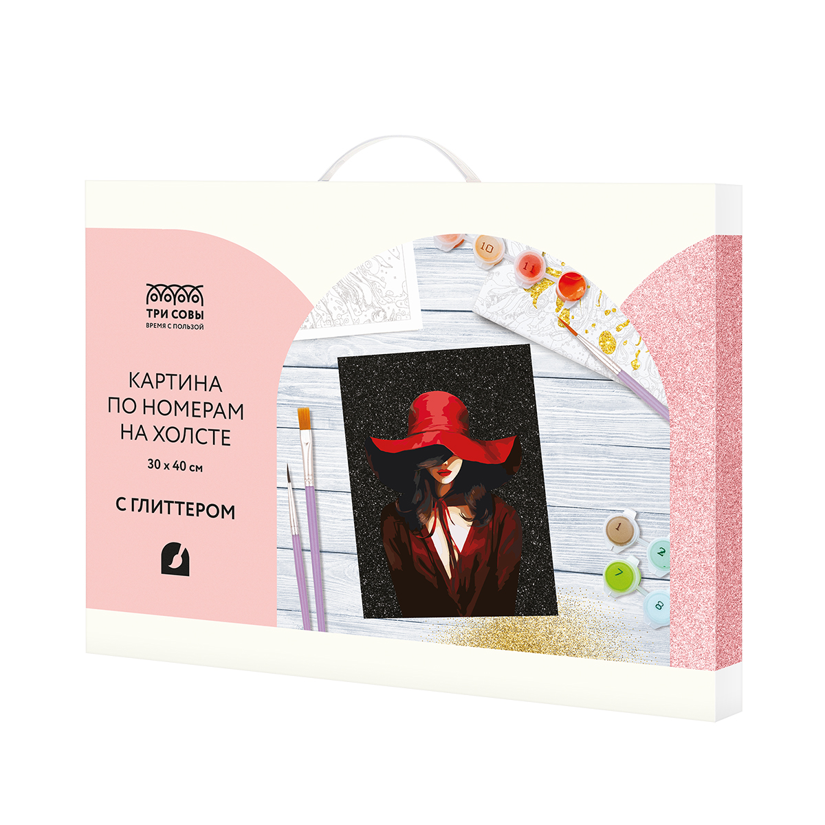 Картина по номерам на холсте с глиттером «Девушка в красном»