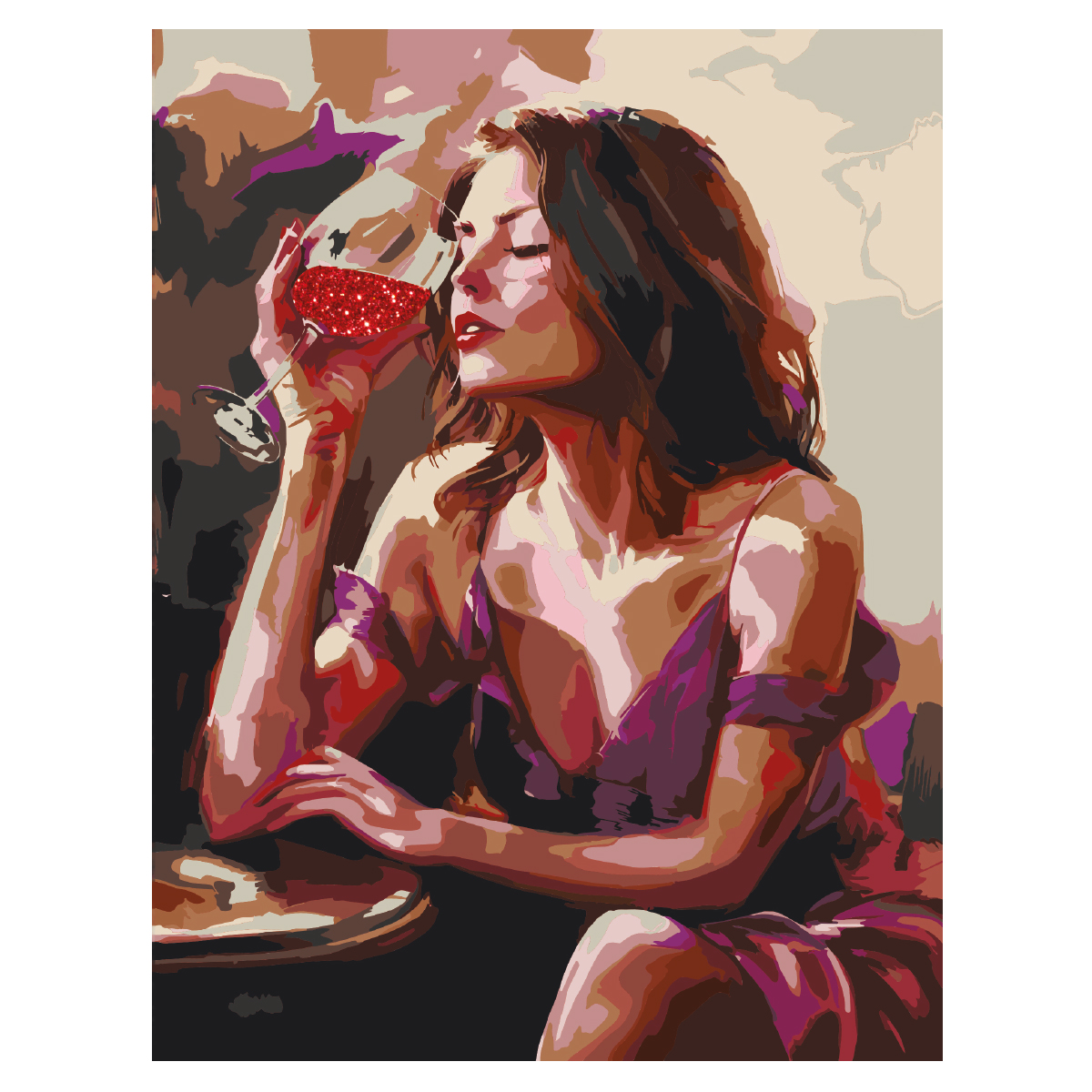 Картина по номерам на холсте с глиттером «Девушка с бокалом»