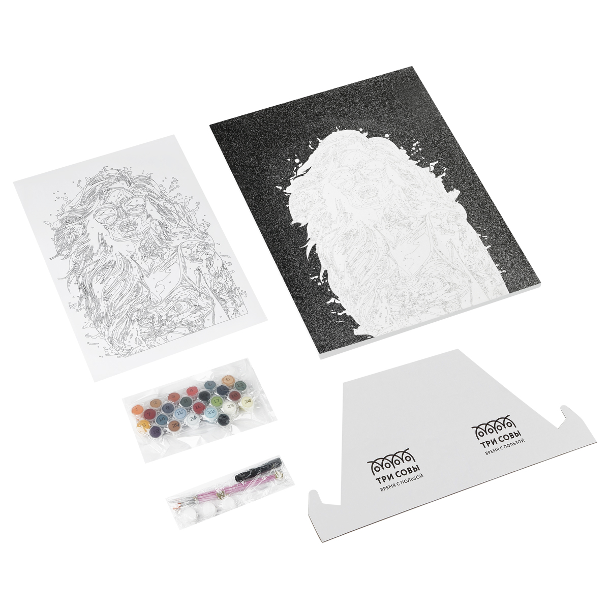 - 24 акриловые краски с высокой укрывистостью на водной основе в пронумерованных баночках