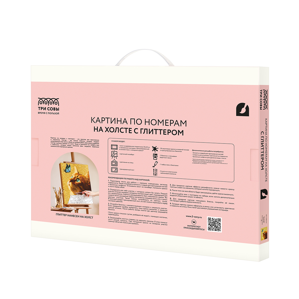 Набор для творчества от бренда «ТРИ СОВЫ» поможет раскрыть творческие способности и создать уникальное произведение искусства. Отделка холста глиттером создает эффект сияния и придает картине очаровательную уникальность, превращая процесс рисования в увлекательное занятие.