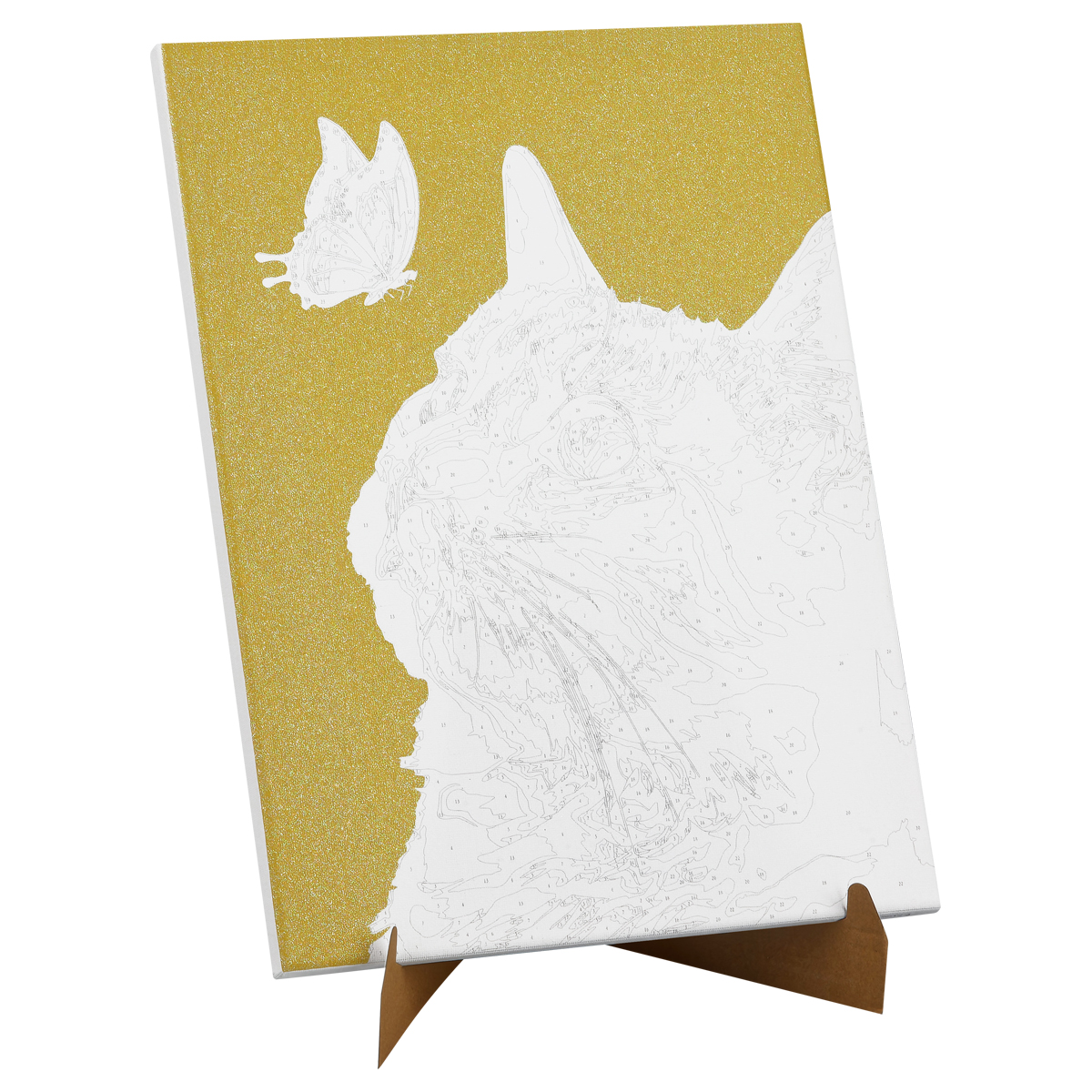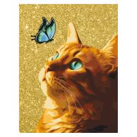 Картина по номерам на холсте с глиттером «Кот и бабочка»