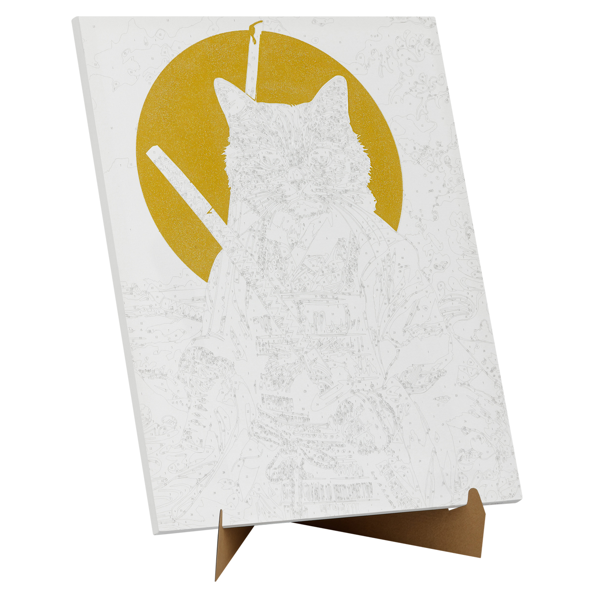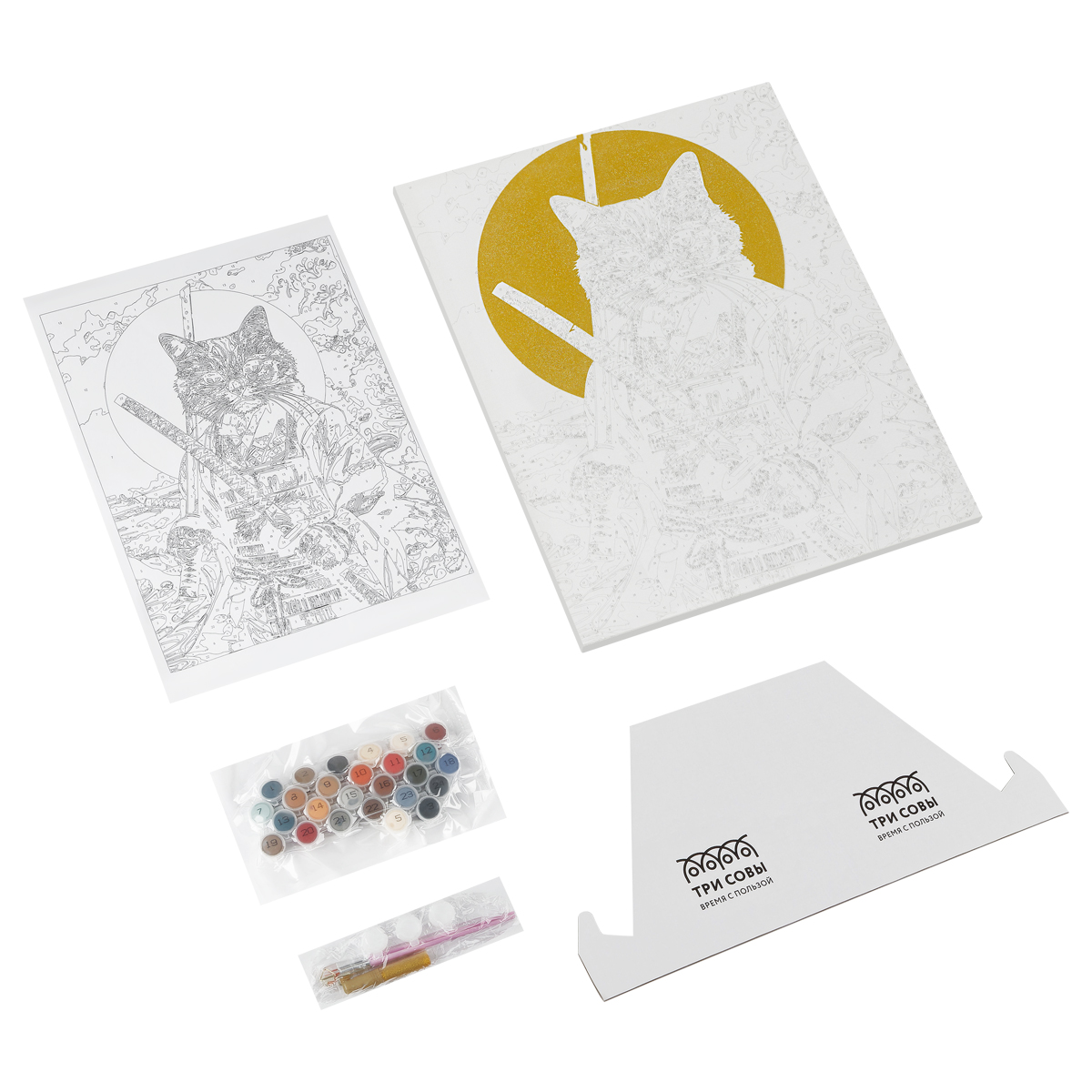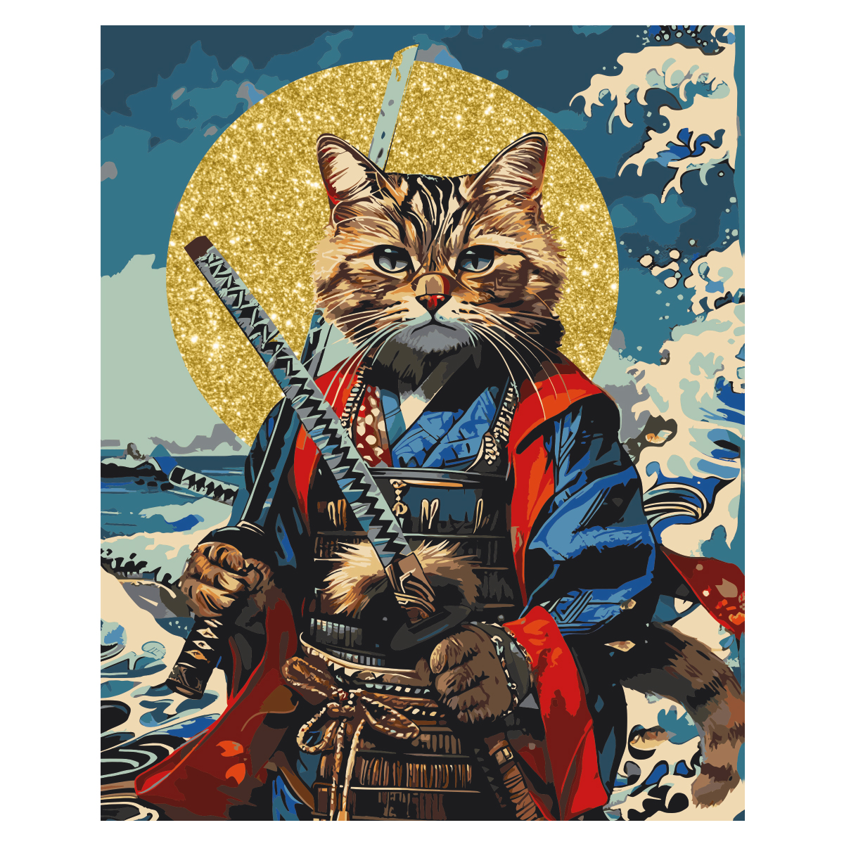 Картина по номерам на холсте с глиттером «Кот-самурай»