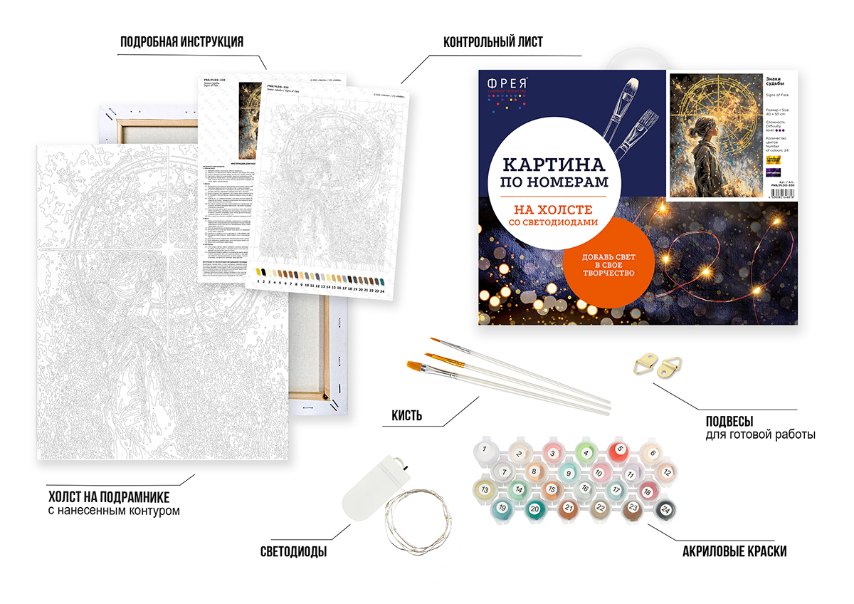 Набор для рисования по номерам ТМ ФРЕЯ на подрамнике (Со светодиодами)