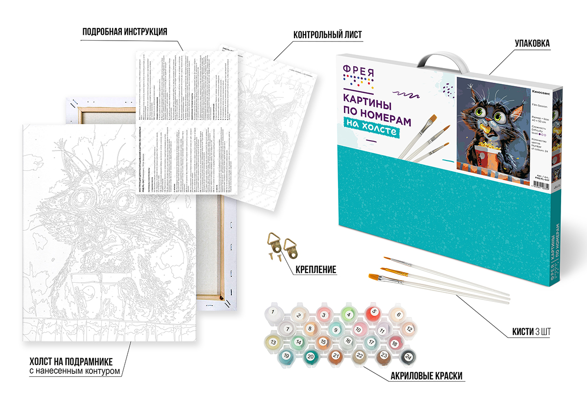 Картина по номерам помогает развить чувство вкуса, снять стресс и насладиться процессом создания художественного произведения. ТМ "Фрея" предлагает сюжеты на любой вкус: от шедевров всемирно известных художников до современных скетчей и популярных постеров. Это прекрасный способ украсить интерьер или сделать душевный подарок близким.