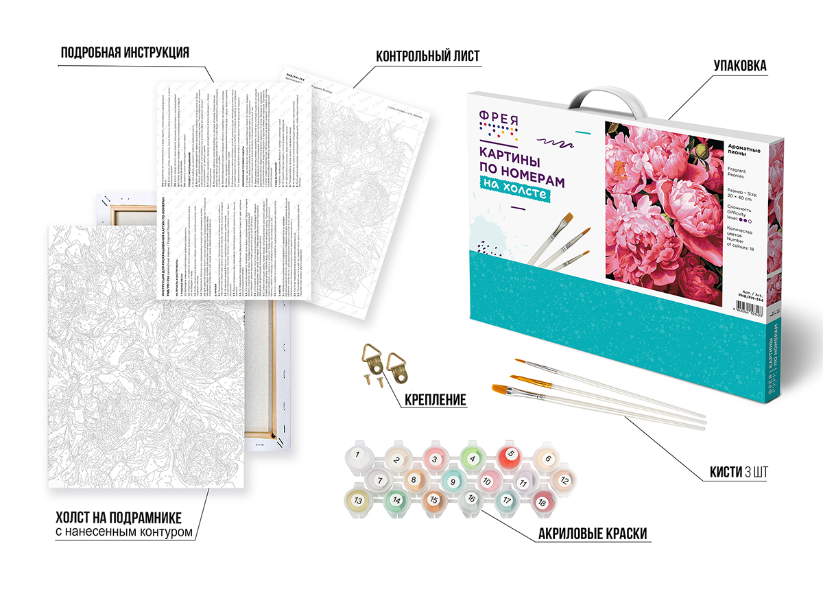 - Точная нумерация и четкий контур, нанесенный даже на торцы подрамника, что позволяет вешать картину без рамы;