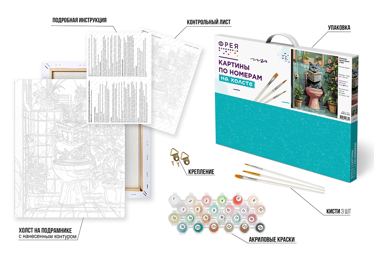 - акриловые краски в пронумерованных баночках и вакуумной упаковке;