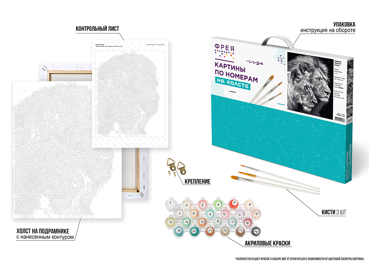 - акриловые краски в пронумерованных баночках и вакуумной упаковке;