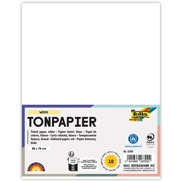 Тонированная бумага FOLIA 130 г/м², 50×70 см, 1 лист, белый FL-6700
