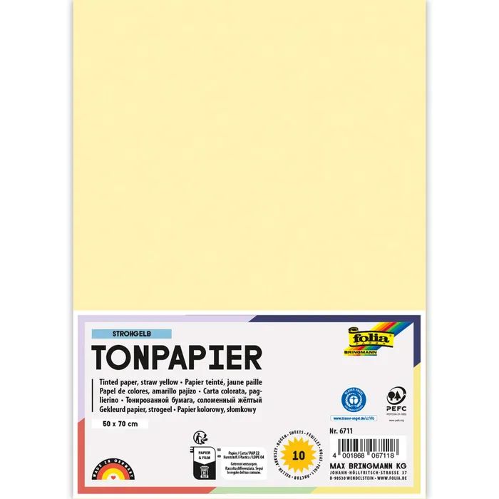 Тонированная бумага FOLIA 130 г/м², 50×70 см, 1 лист, соломенно-жёлтый FL-6711
