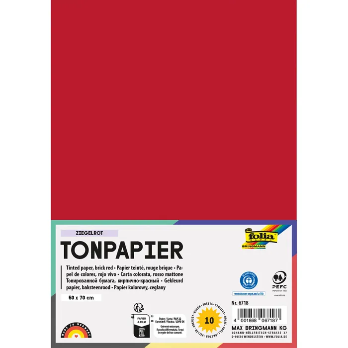 Тонированная бумага FOLIA 130 г/м², 50×70 см, 1 лист, кирпично-красный FL-6718