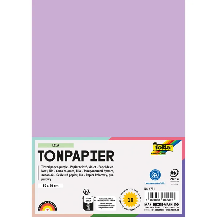 Тонированная бумага FOLIA® плотностью 130 г/м² представляет собой идеальный баланс между гибкостью и прочностью. Она достаточно тонкая для использования в различных техниках складывания (оригами) и аппликации, но при этом обладает необходимой плотностью, чтобы не рваться в процессе работы. Бумага окрашена в массе (durchgefärbt), что гарантирует сохранение цвета на срезе и сгибах, а отсутствие кислот (säurefrei) в составе обеспечивает долговечность ваших работ, предотвращая пожелтение со временем.