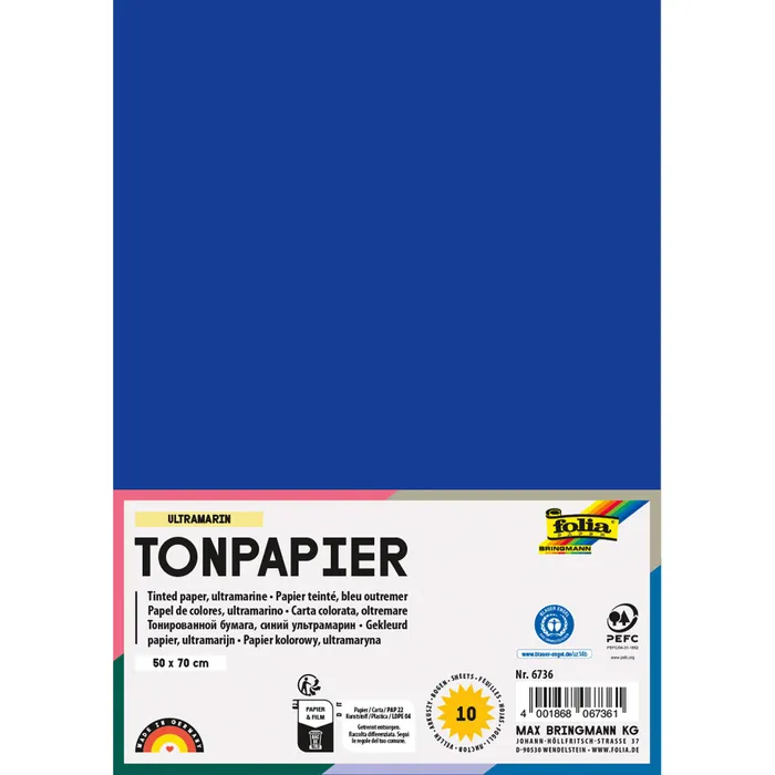 Тонированная бумага FOLIA 130 г/м², 50×70 см, 1 лист, ультрамарин FL-6736