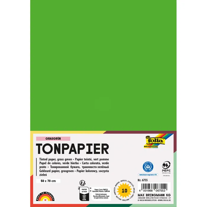 Тонированная бумага FOLIA® плотностью 130 г/м² представляет собой идеальный баланс между гибкостью и прочностью. Она достаточно тонкая для использования в различных техниках складывания (оригами) и аппликации, но при этом обладает необходимой плотностью, чтобы не рваться в процессе работы. Бумага окрашена в массе (durchgefärbt), что гарантирует сохранение цвета на срезе и сгибах, а отсутствие кислот (säurefrei) в составе обеспечивает долговечность ваших работ, предотвращая пожелтение со временем.