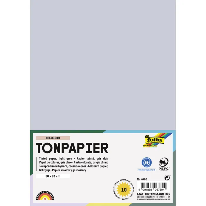 Тонированная бумага FOLIA 130 г/м², 50×70 см, 1 лист, светло-серый FL-6780