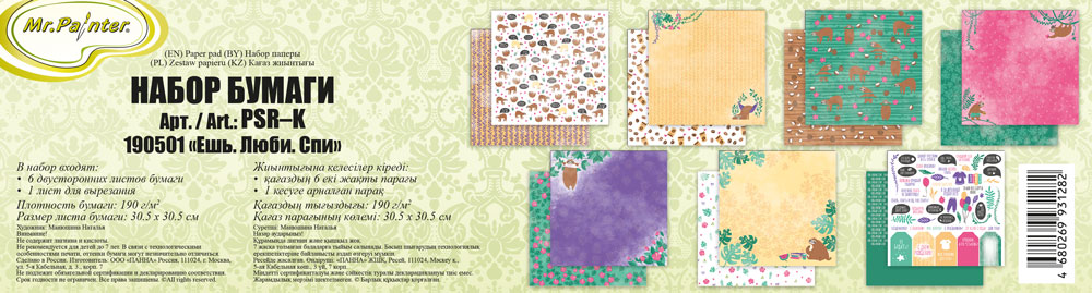 Набор бумаги для скрапбукинга "Mr.Painter" PSR-K состоит из 6 двусторонних листов из коллекции и 1 листа для вырезания. Покупая набор бумаги, вы приобретаете всю коллекцию целиком.