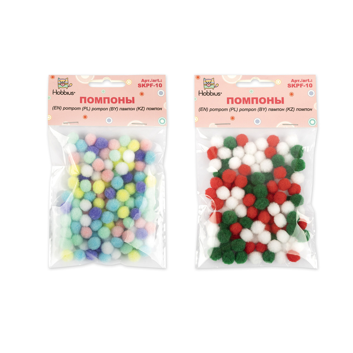Помпоны торговой марки "Hobbius" арт. SKPF-10 — мягкий и универсальный материал для вашего творчества.