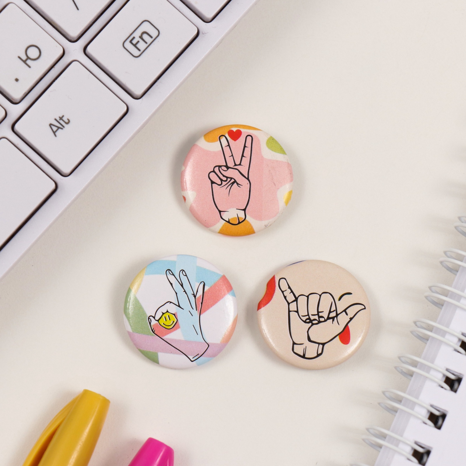 Набор закатных значков (3 шт, d=25 мм) «Жесты»