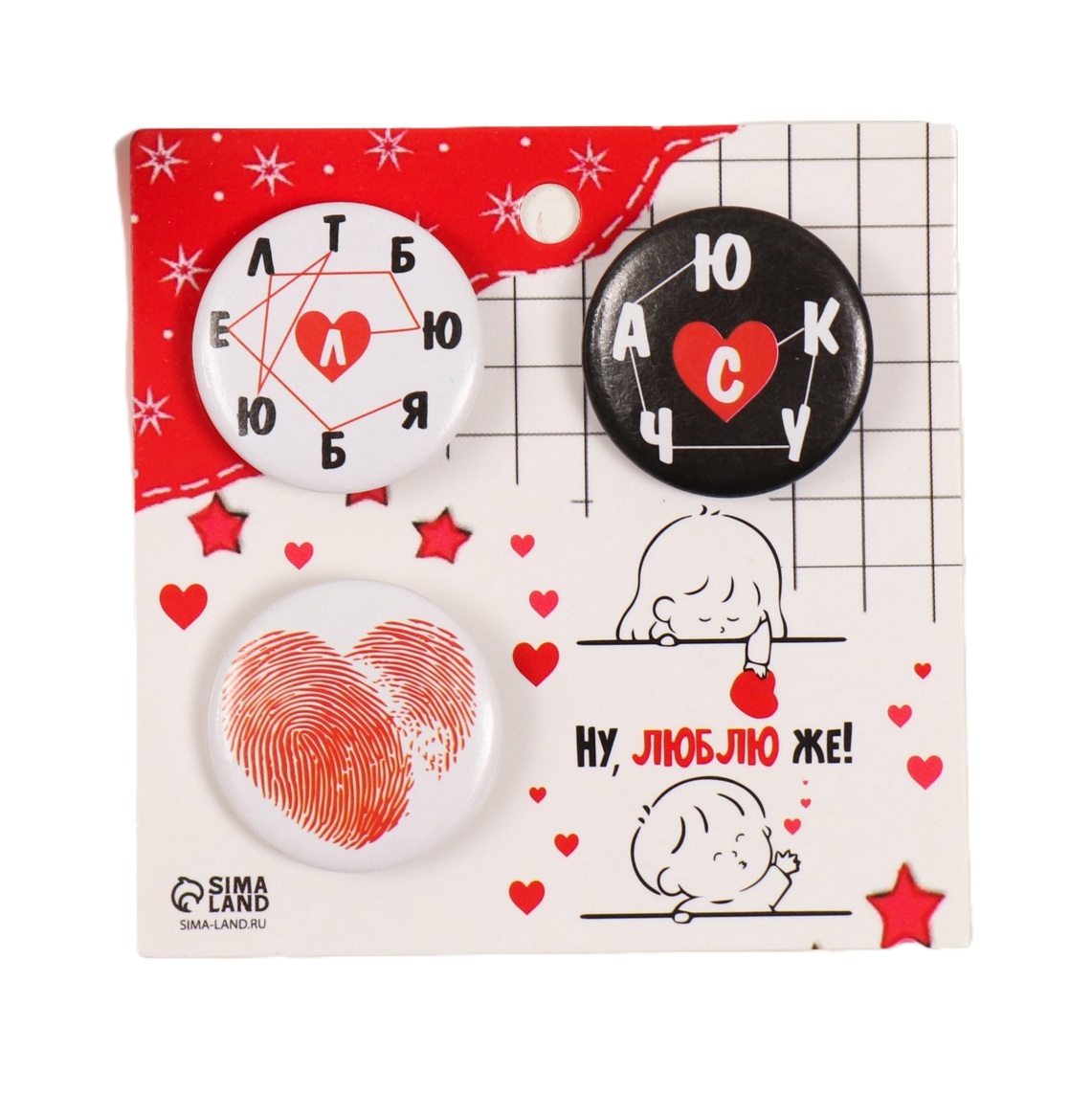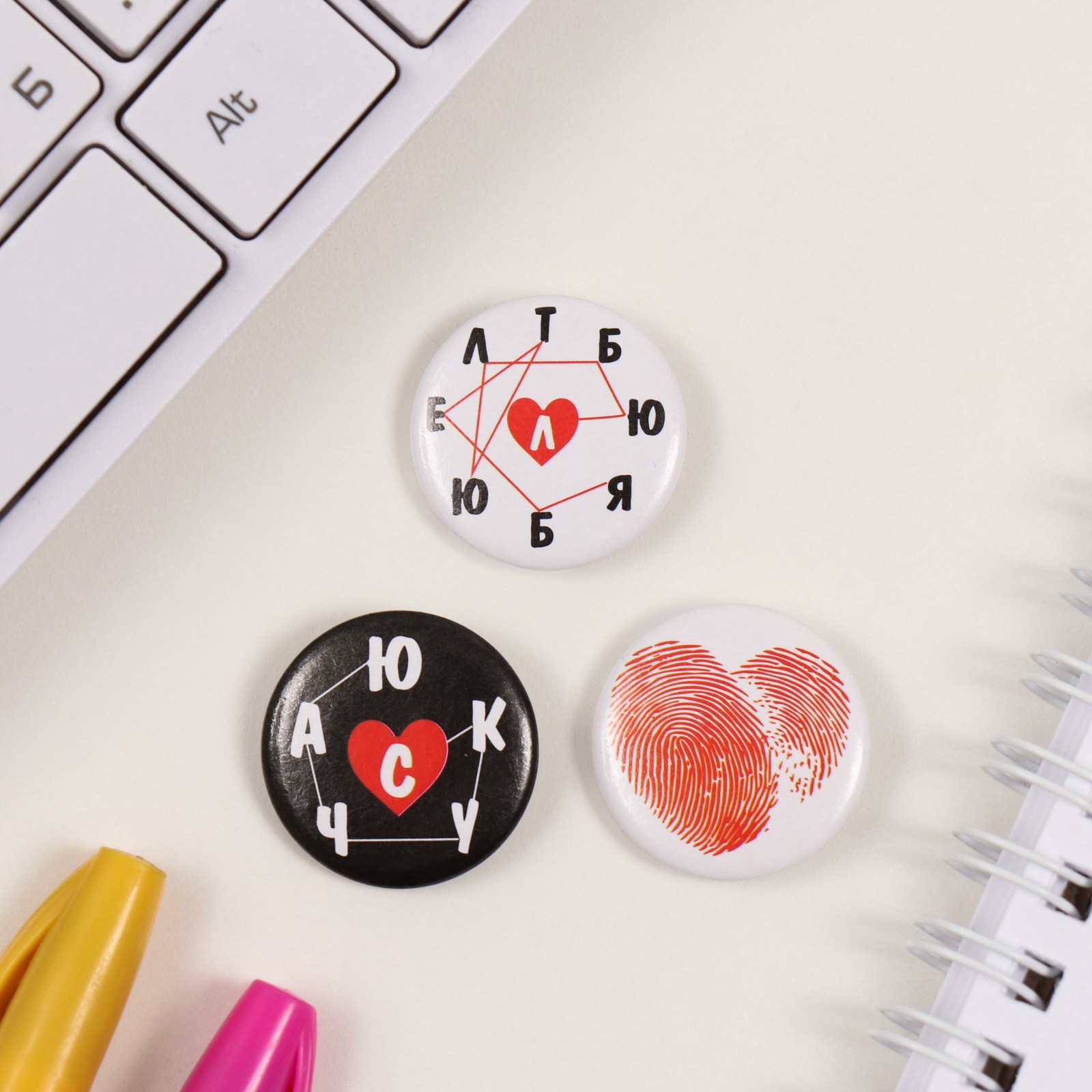 Набор закатных значков (3 шт, d=25 мм) «Люблю»
