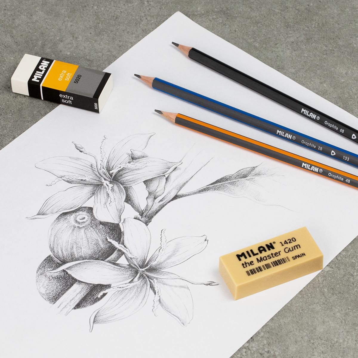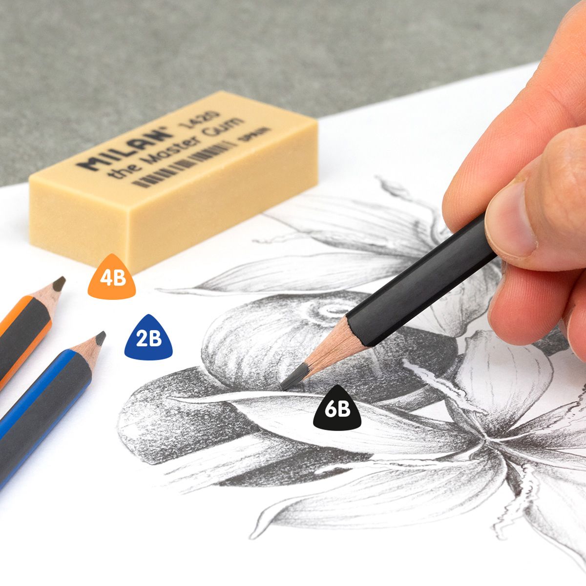 Графитные карандаши MILAN с мягким грифелем 4B идеально подходят для художественного рисования. Их эргономичная трехгранная форма обеспечивает максимальный комфорт во время работы, а толстый грифель создает насыщенные штрихи. Благодаря системе защиты грифеля LPS (Lead Protection System), грифель устойчив к поломке, так как приклеен к корпусу карандаша.