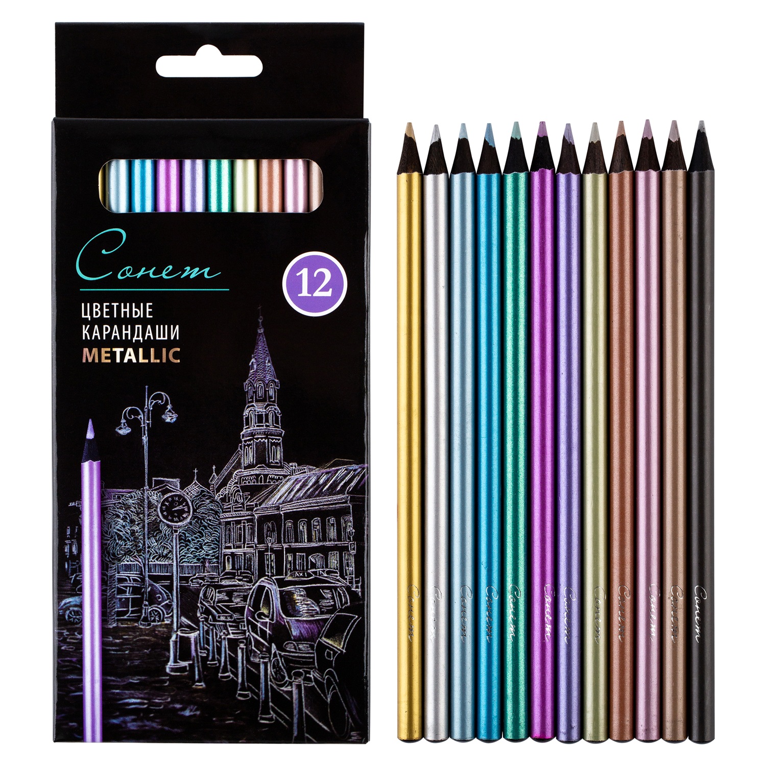 Набор цветных карандашей «Сонет» Metallic — сияющие акценты и спецэффекты в графике.