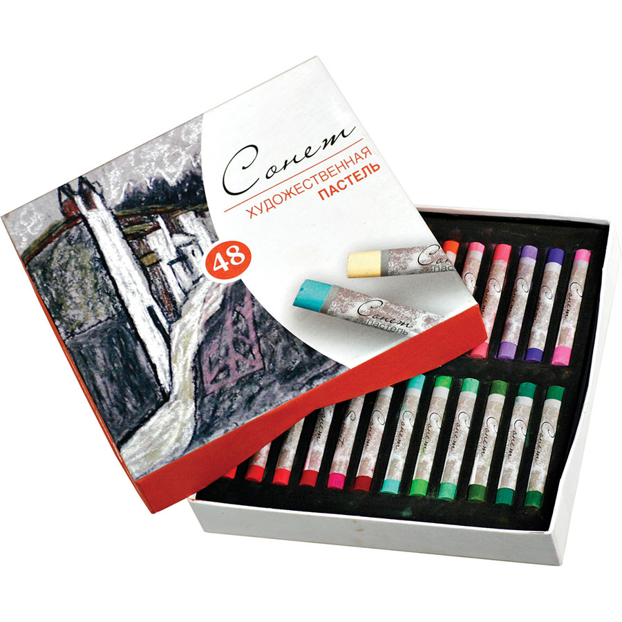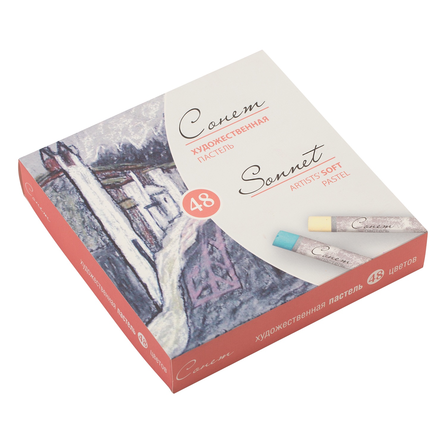 Сухая мягкая пастель «Сонет» в наборе из 48 цветов открывает перед художником широчайший спектр колористических возможностей. Благодаря использованию тонкодисперсных пигментов каждый мелок обладает нежной бархатистой текстурой, легко ложится на основу и превосходно растушевывается. Столь богатая палитра позволяет создавать сложнейшие живописные работы с тончайшими тоновыми нюансами, не ограничивая себя в выборе сюжетов — от многослойных пейзажей до детальных портретов.