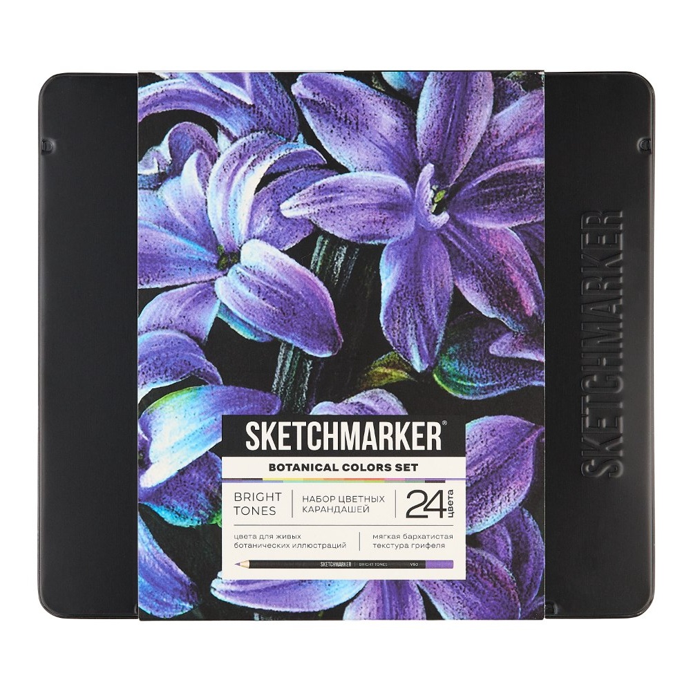 Sketchmarker Bright Tones Botanical Set — это специализированный набор из 24 оттенков, вдохновленный миром природы и идеально подходящий для ботанической живописи, цветочных скетчей и натуралистичных иллюстраций. Грифель на масляной основе диаметром 4 мм обеспечивает мягкое скольжение по бумаге и позволяет накладывать множество слоев, добиваясь фотографической точности лепестков, листьев и сложных переходов цвета. Благодаря высокой пигментации, карандаши дают яркое и плотное покрытие, помогая передать всю сочность живой природы.
