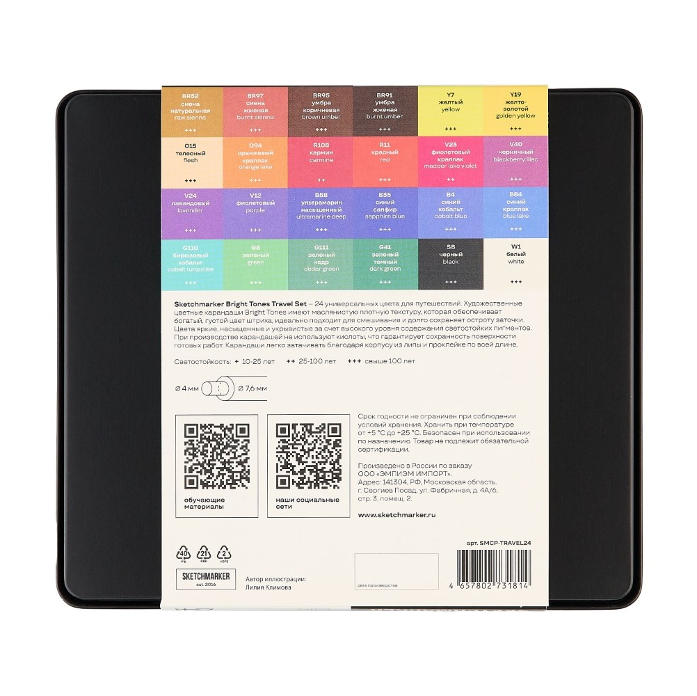 Набор цветных карандашей Sketchmarker Bright Tones Travel Set (24 цвета) — универсальная палитра для ярких путевых заметок.