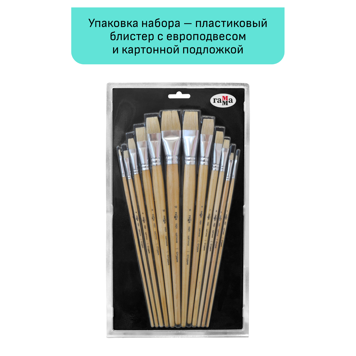 Набор плоских кистей ГАММА «Студия» — идеальный выбор для масляной живописи. Натуральная свиная щетина обладает необходимой жесткостью и износостойкостью, позволяя художнику полностью контролировать мазок, а чашеобразная форма ворса обеспечивает максимальный набор краски.